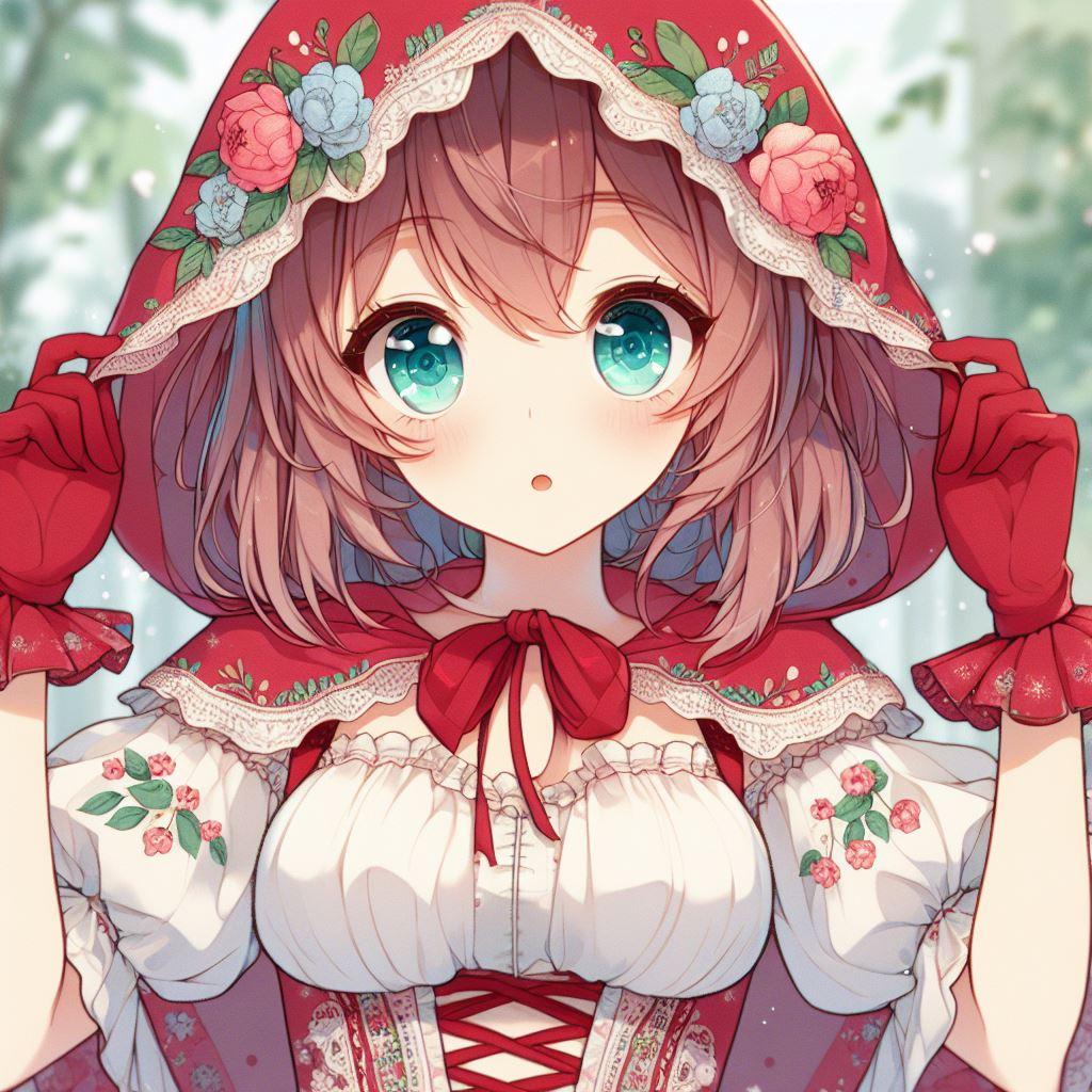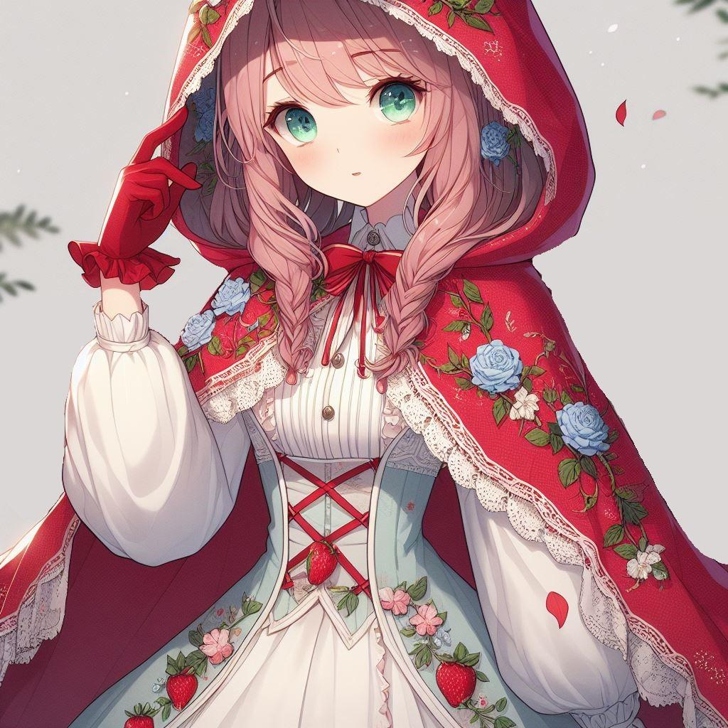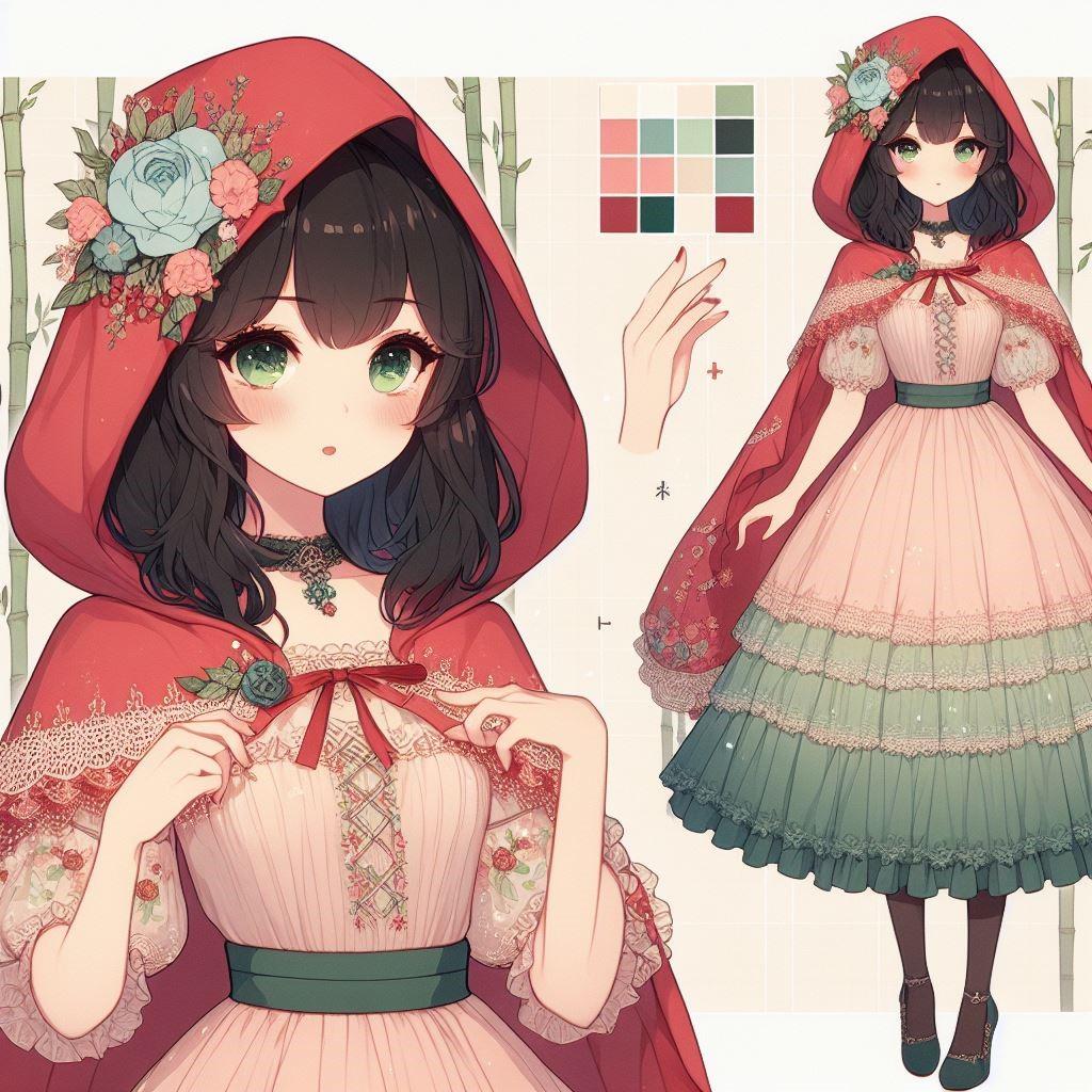 赤ずきんモチーフのワンピースドレス第四弾はシンプルに「可愛い」「小鳥のさえずりや木漏れ日がさす森の少女」です。