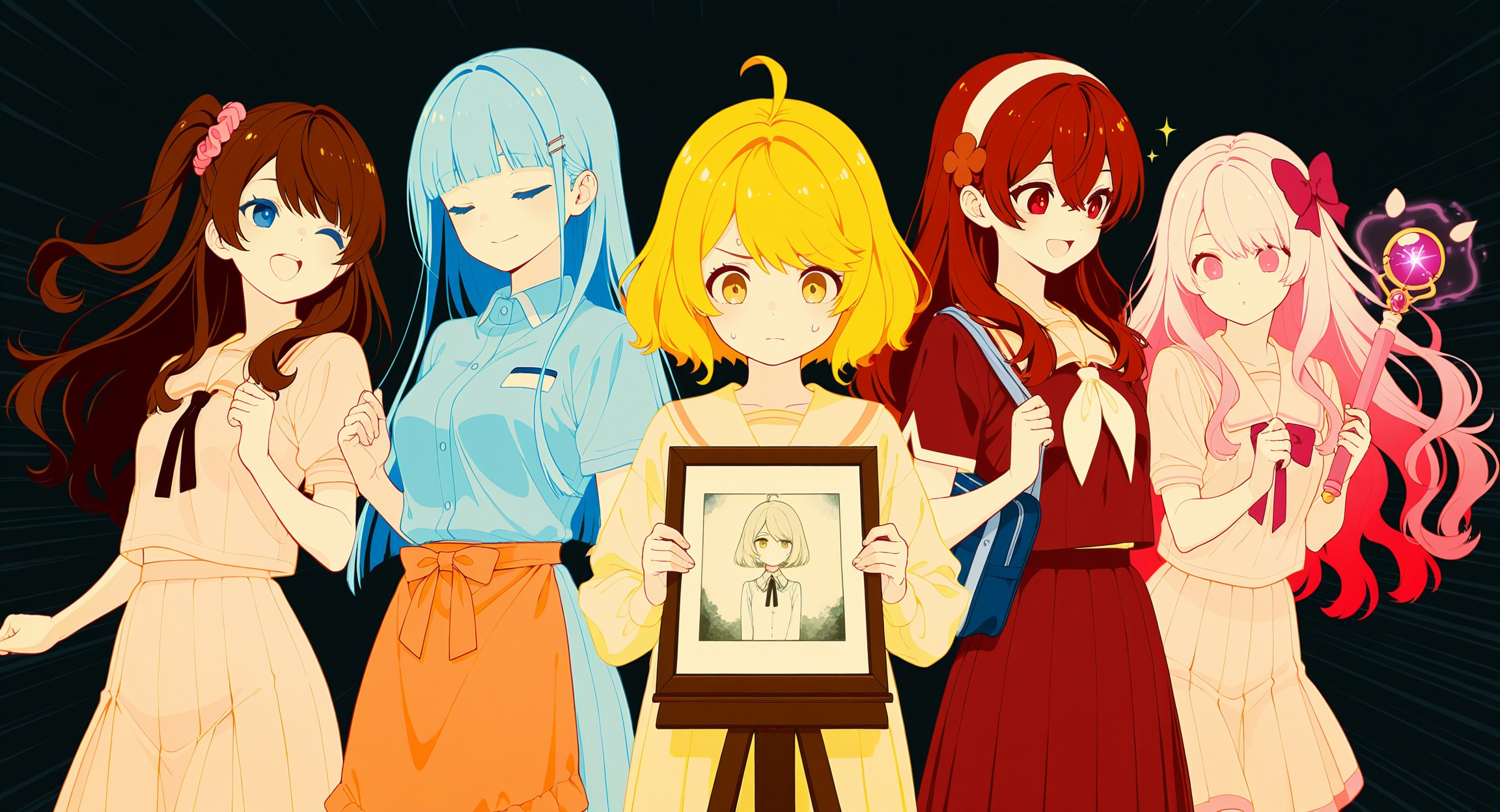 個別ユーザ企画最終版ということで、過去に投稿したキャラごとのプロンプトを流用して(女の子)全員に再トライ。