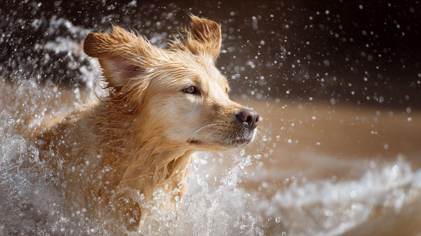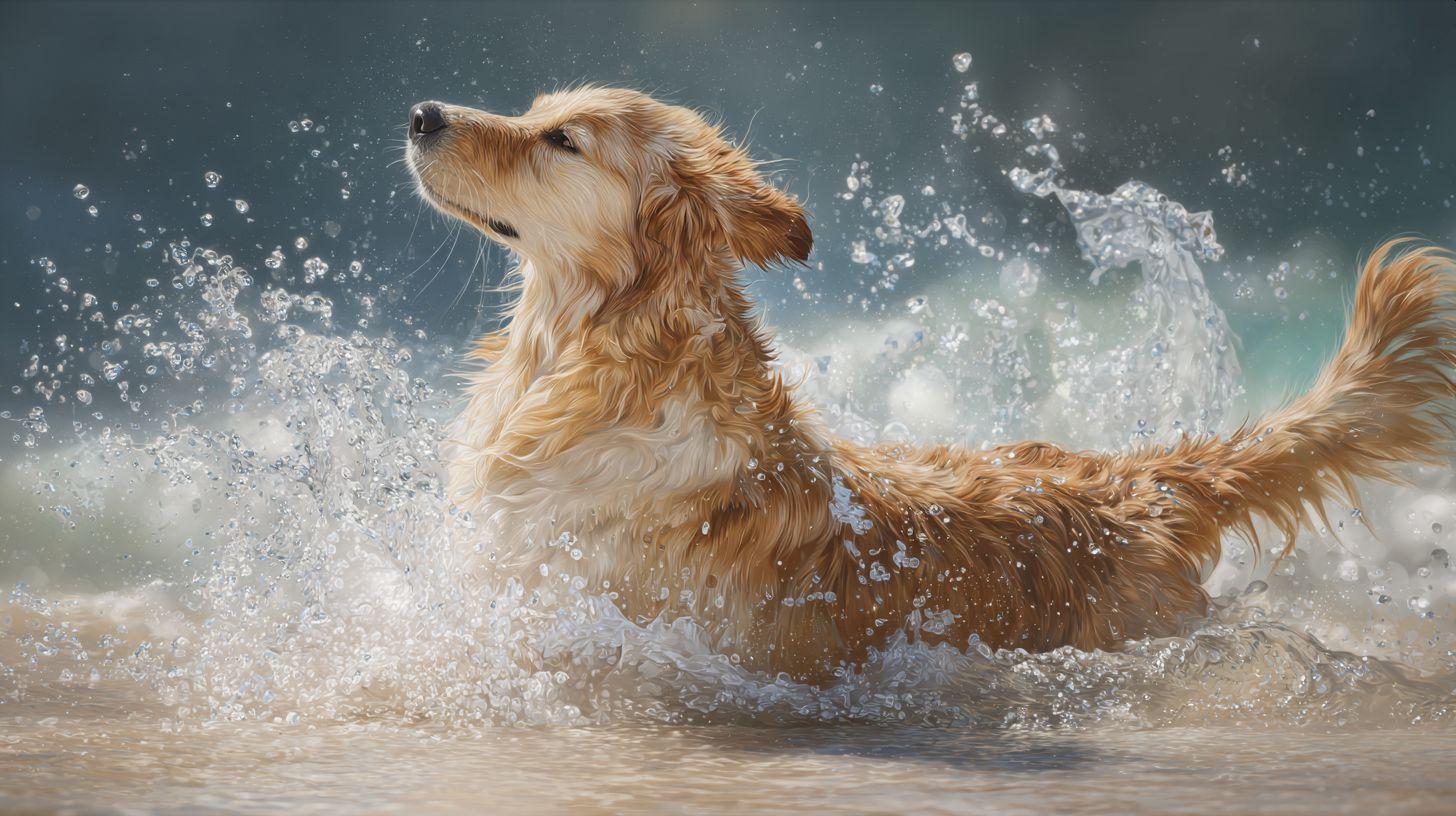泳いだ後の犬が、体をぶるぶるさせて水を飛ばしているシーンにしたかったんだ