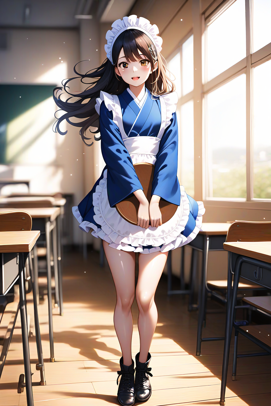 個人的には以前に生成した和風メイドのリベンジ作品です。