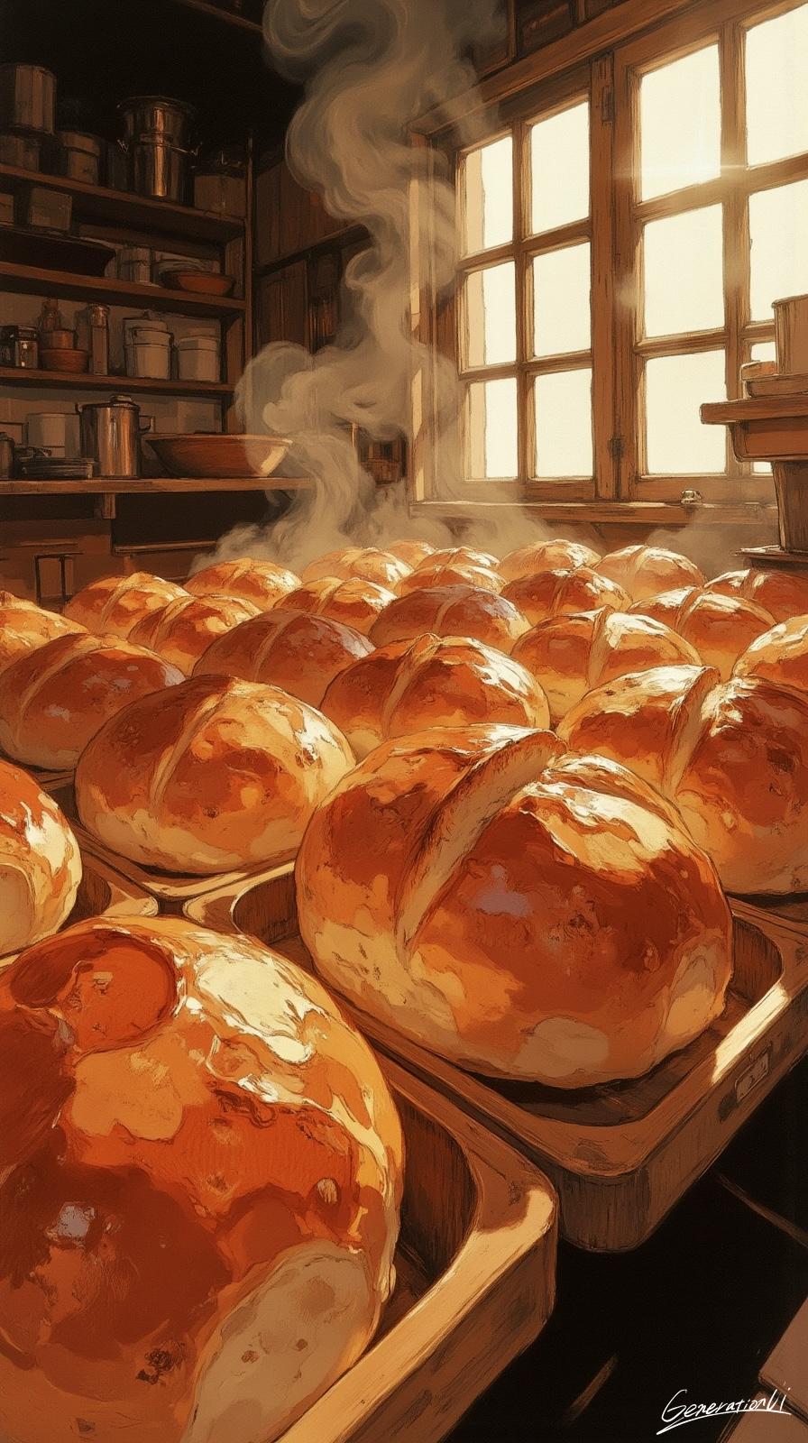 湯気を立てるパンたちを照らす。