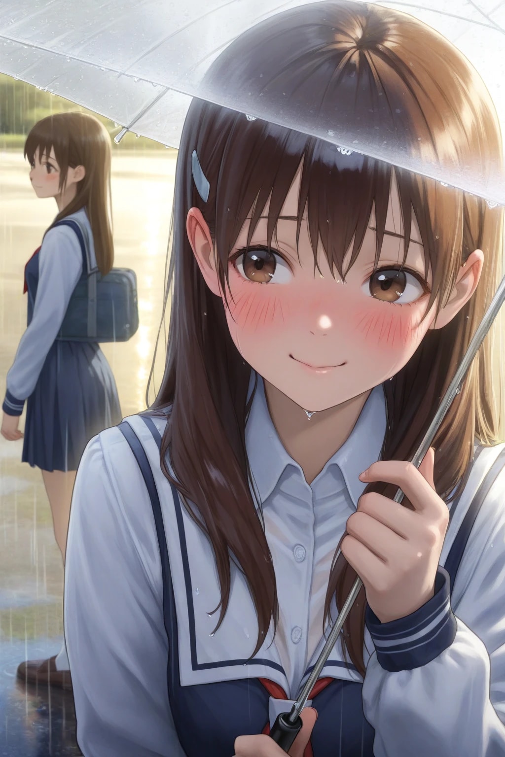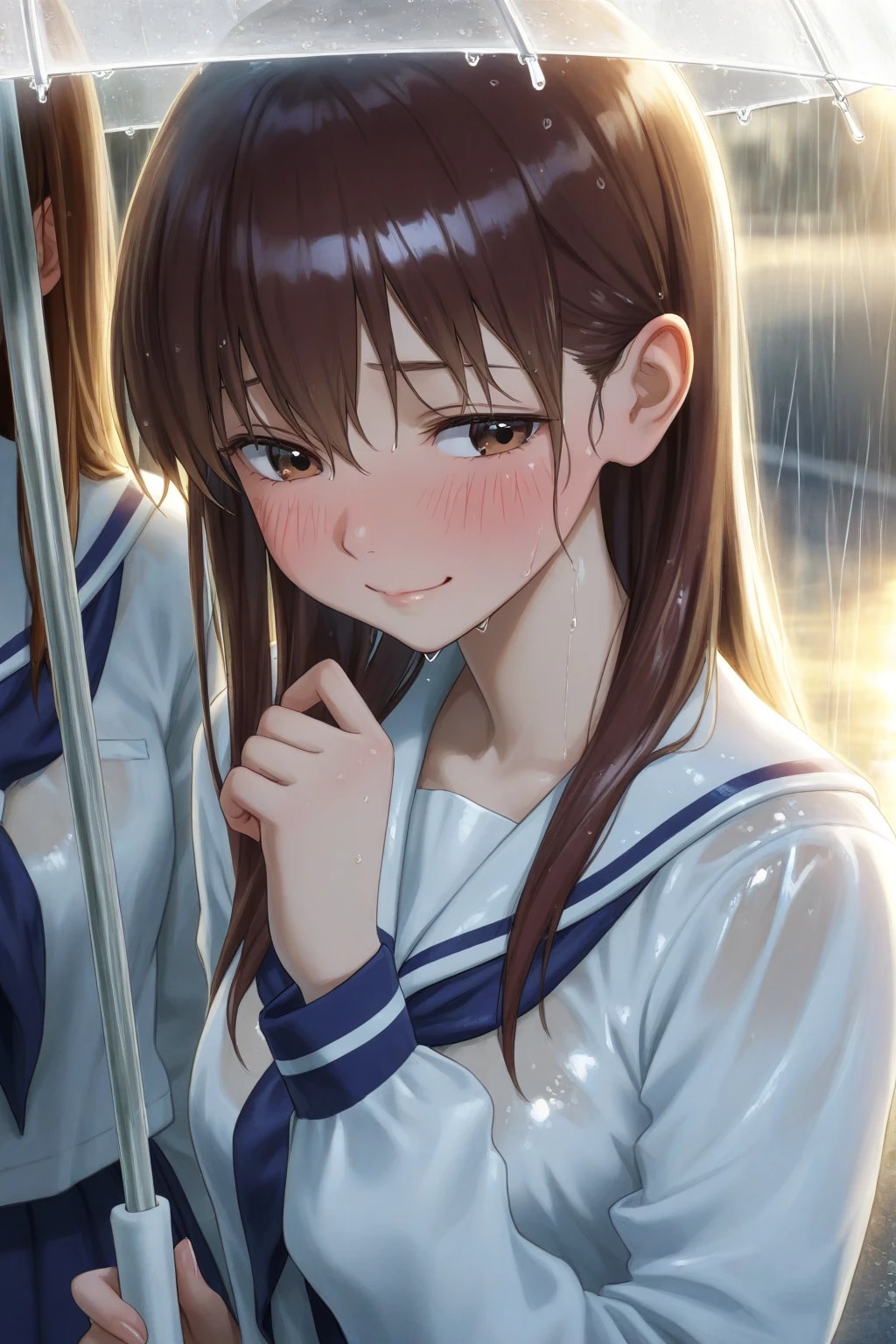 制服ビショビショ・・・!でも傘に入れてくれてありがとう♪