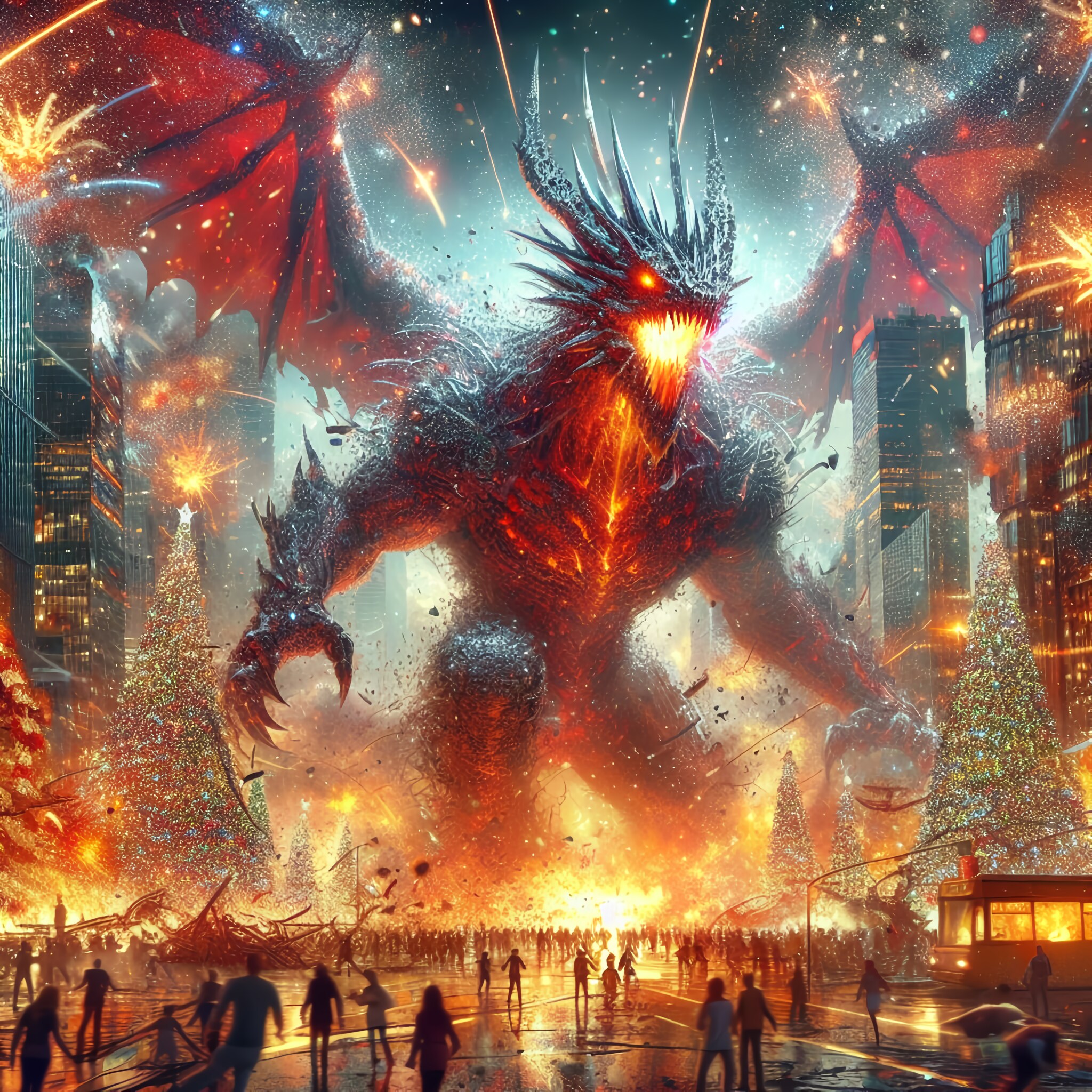 クリスマスを目前に控え浮かれ立つ街の上空に、突如として現れた時空の裂け目から謎の巨大生物が降臨。