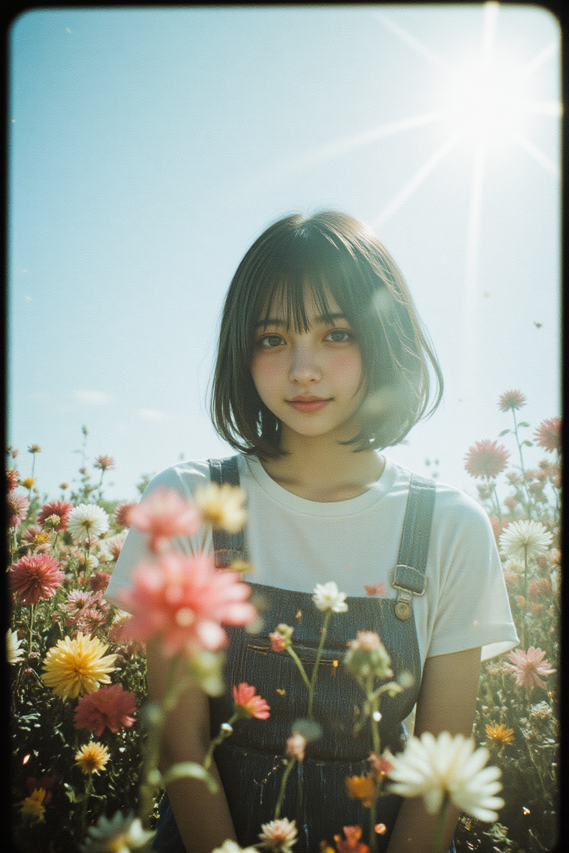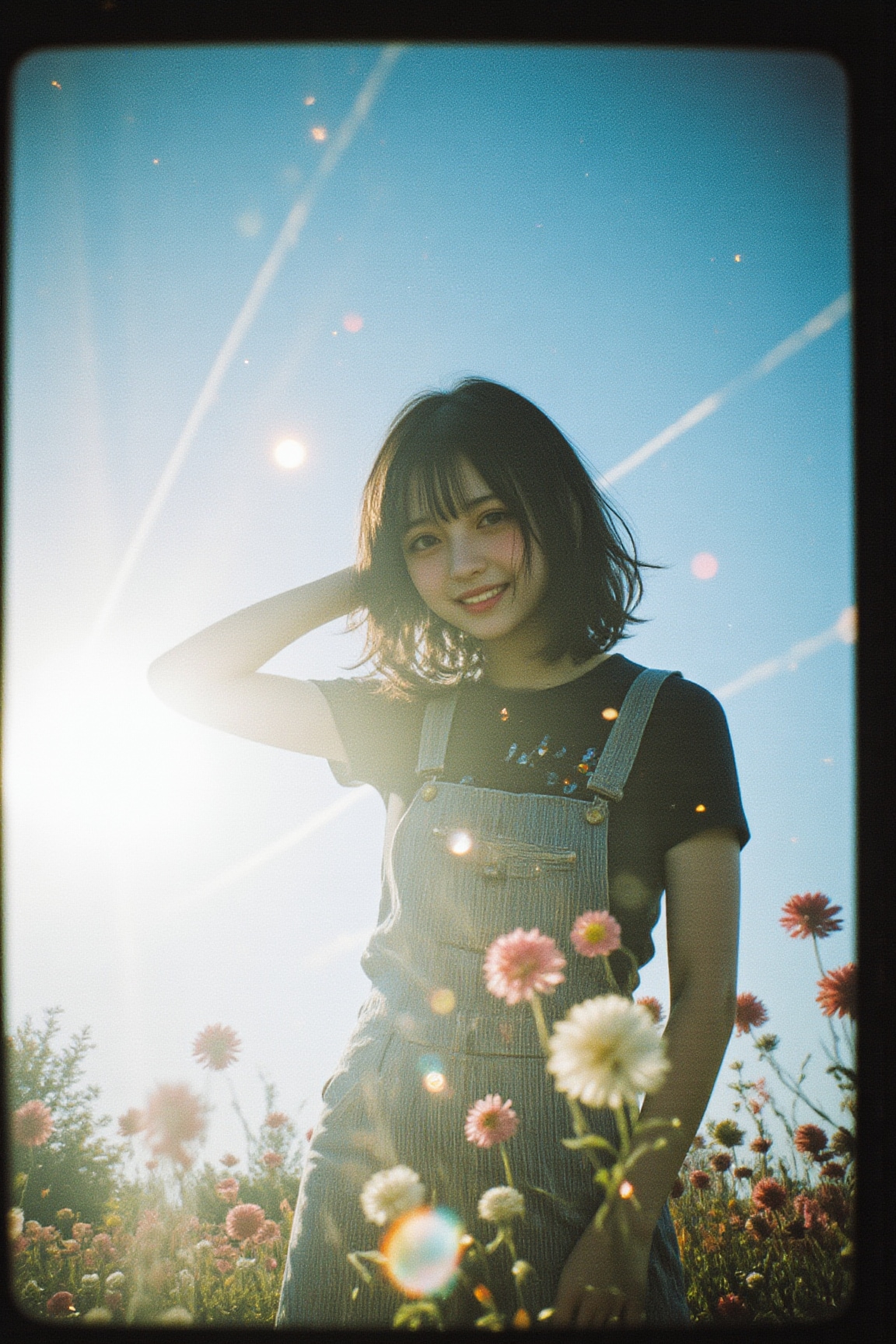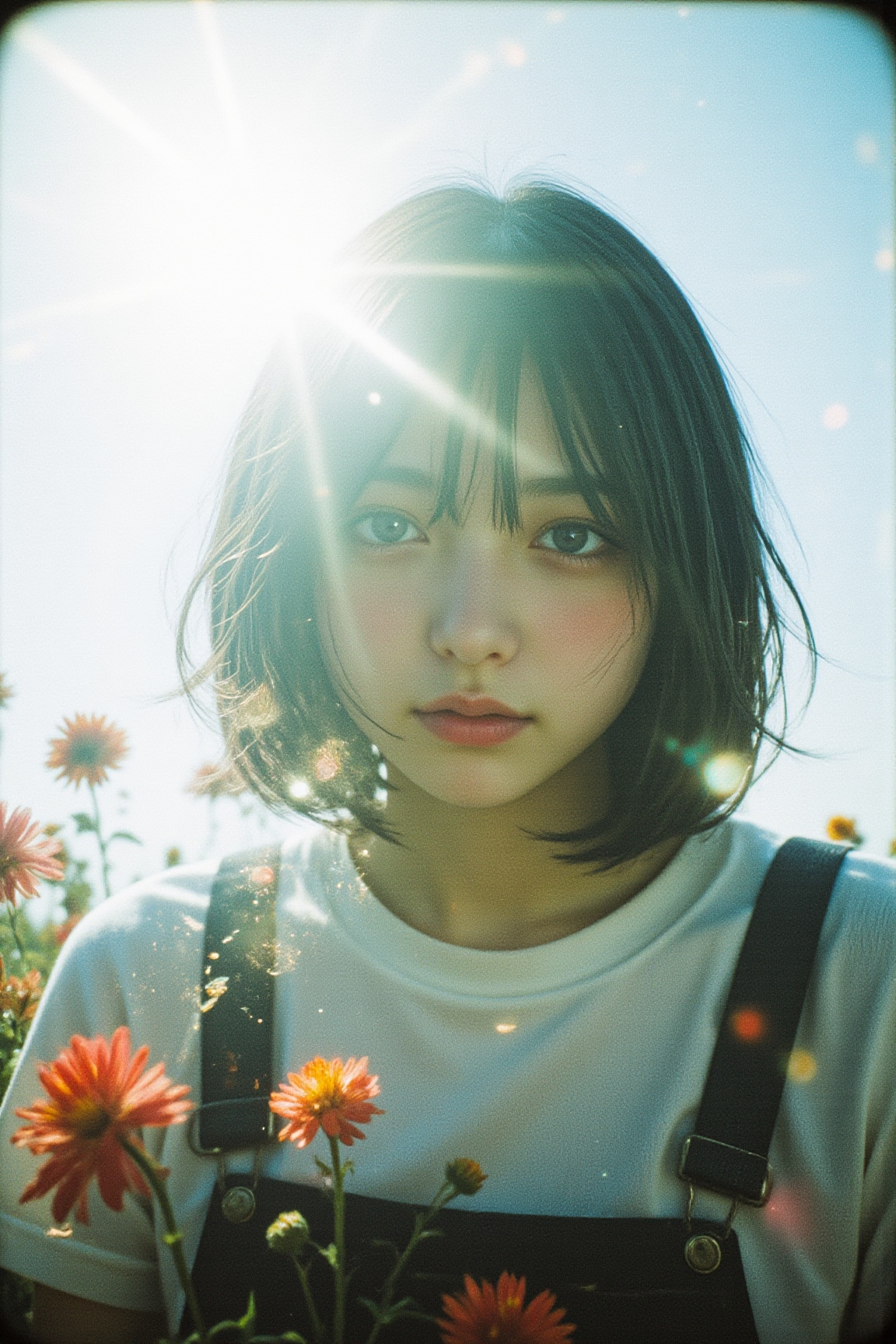 ボブカットの女の子と光のエフェクトやアナログ感が好きです。