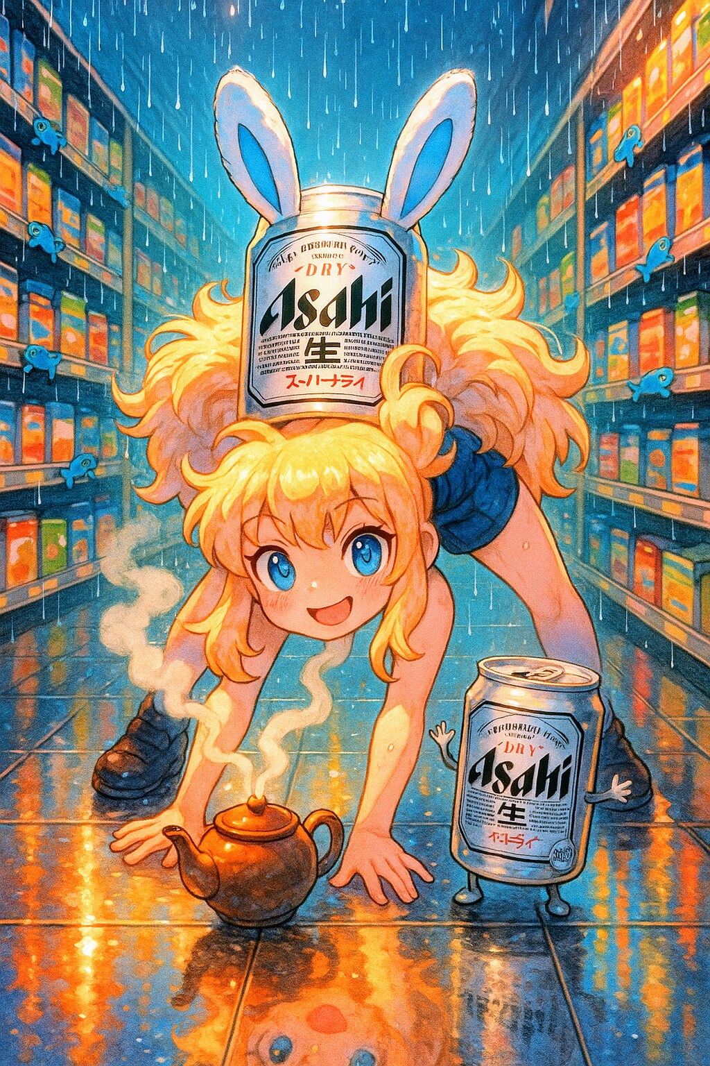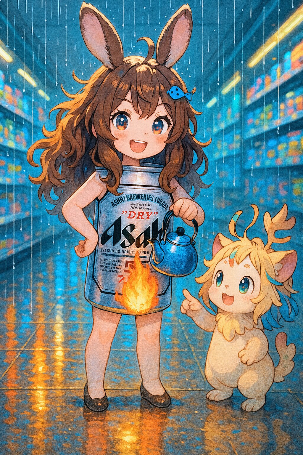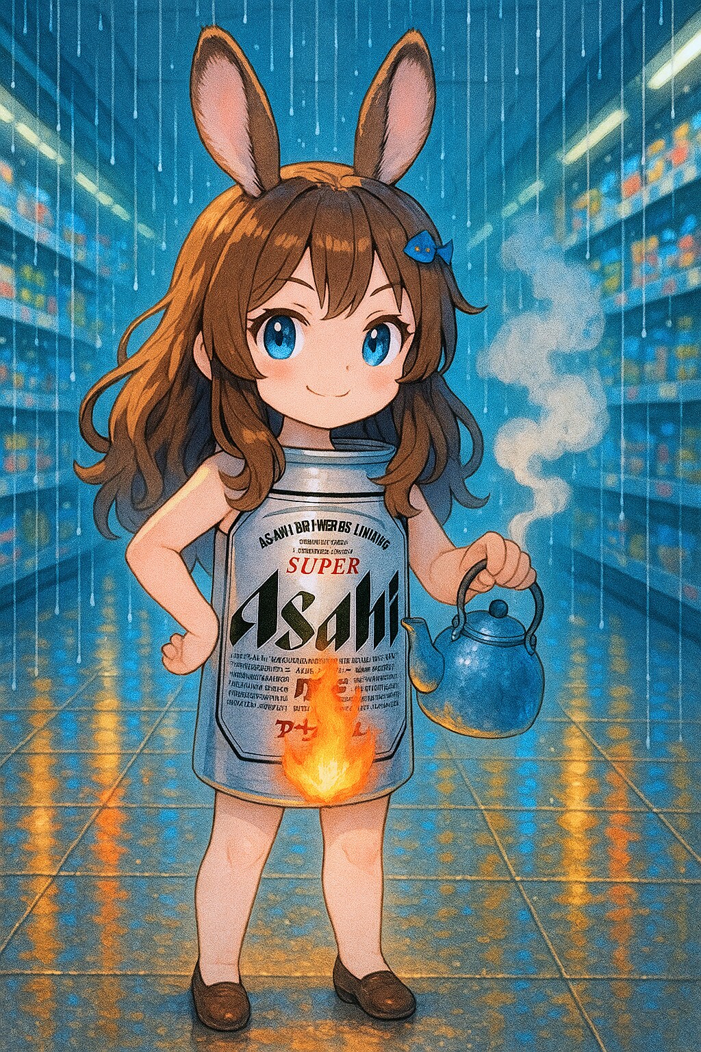 雨が降るスーパーでヘソで茶を沸かすウサ耳の小さな女の子