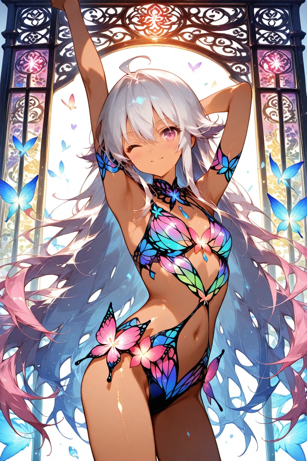 2種類の蝶水着(普通とカラフル)をQILINとGRYPHONで生成しましたので比較も是非
