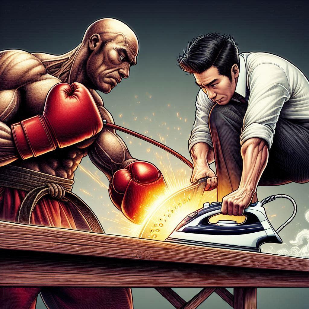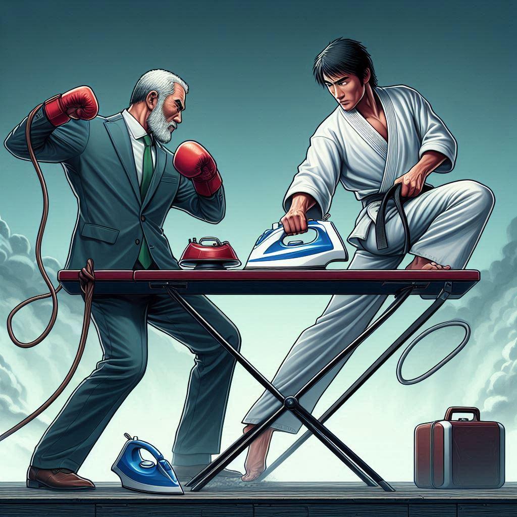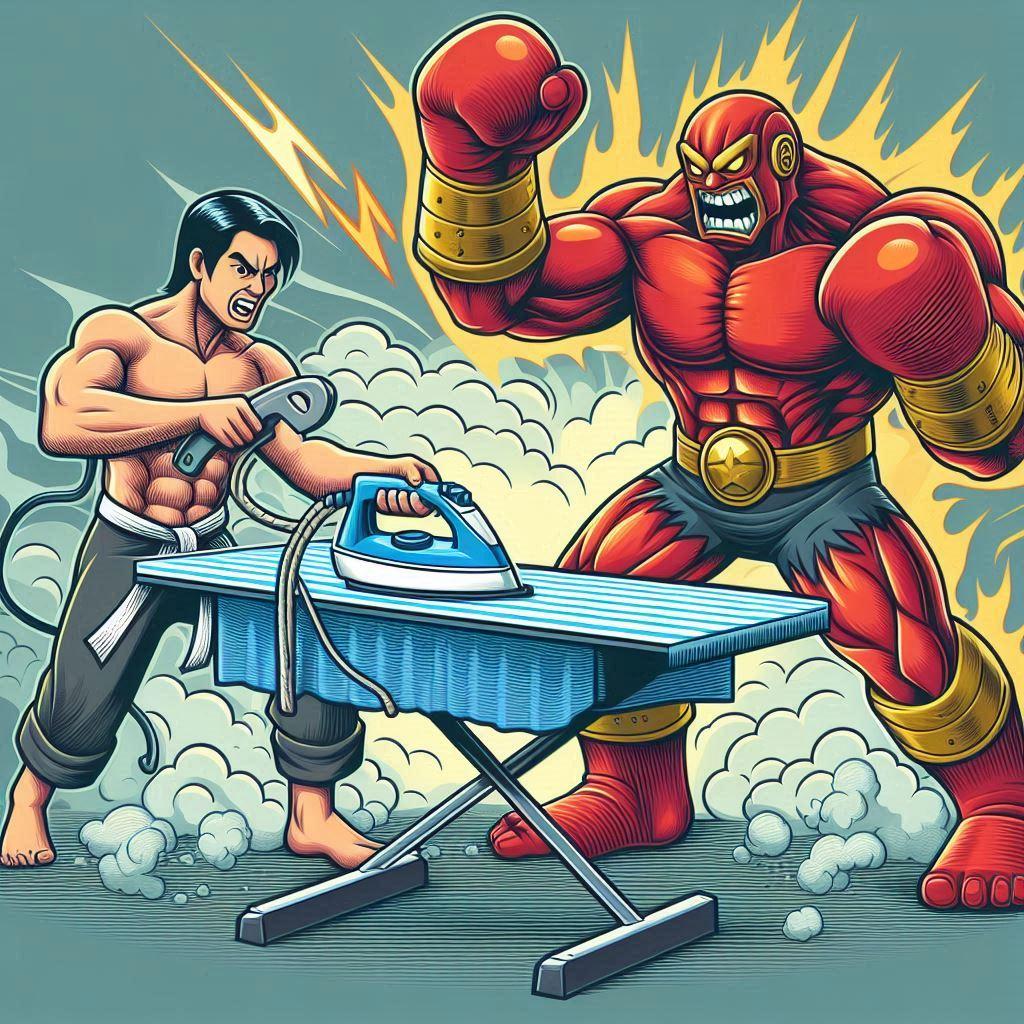 それは・・・ アイロンがけとボクシングを組み合わせた全く新しい格闘技である。