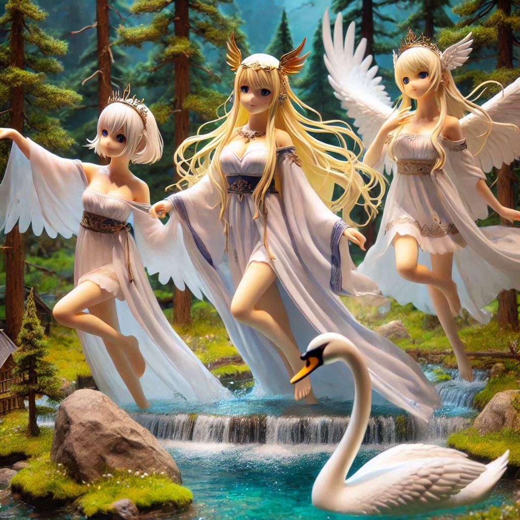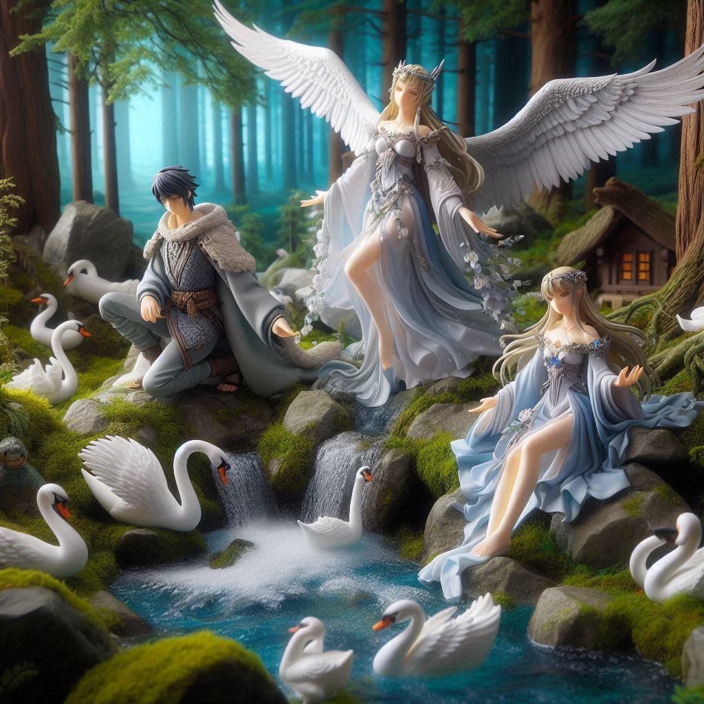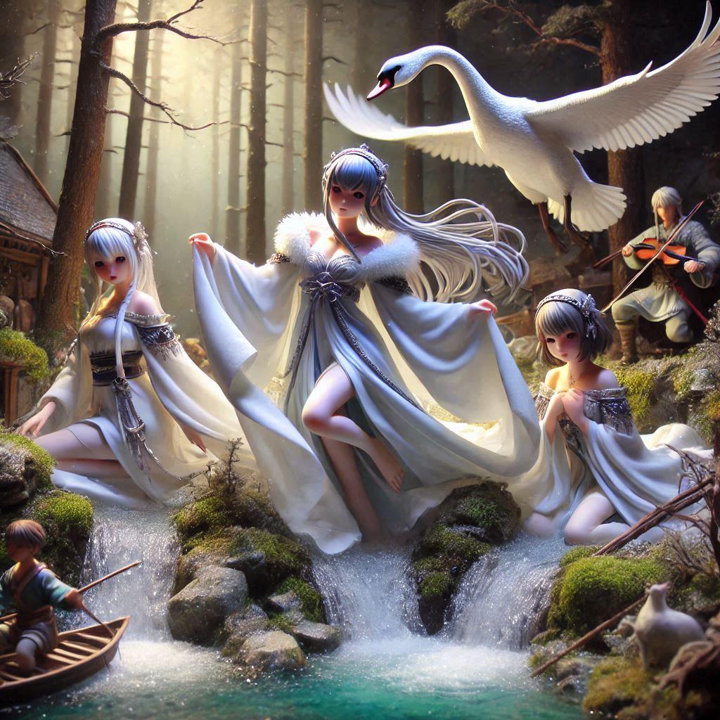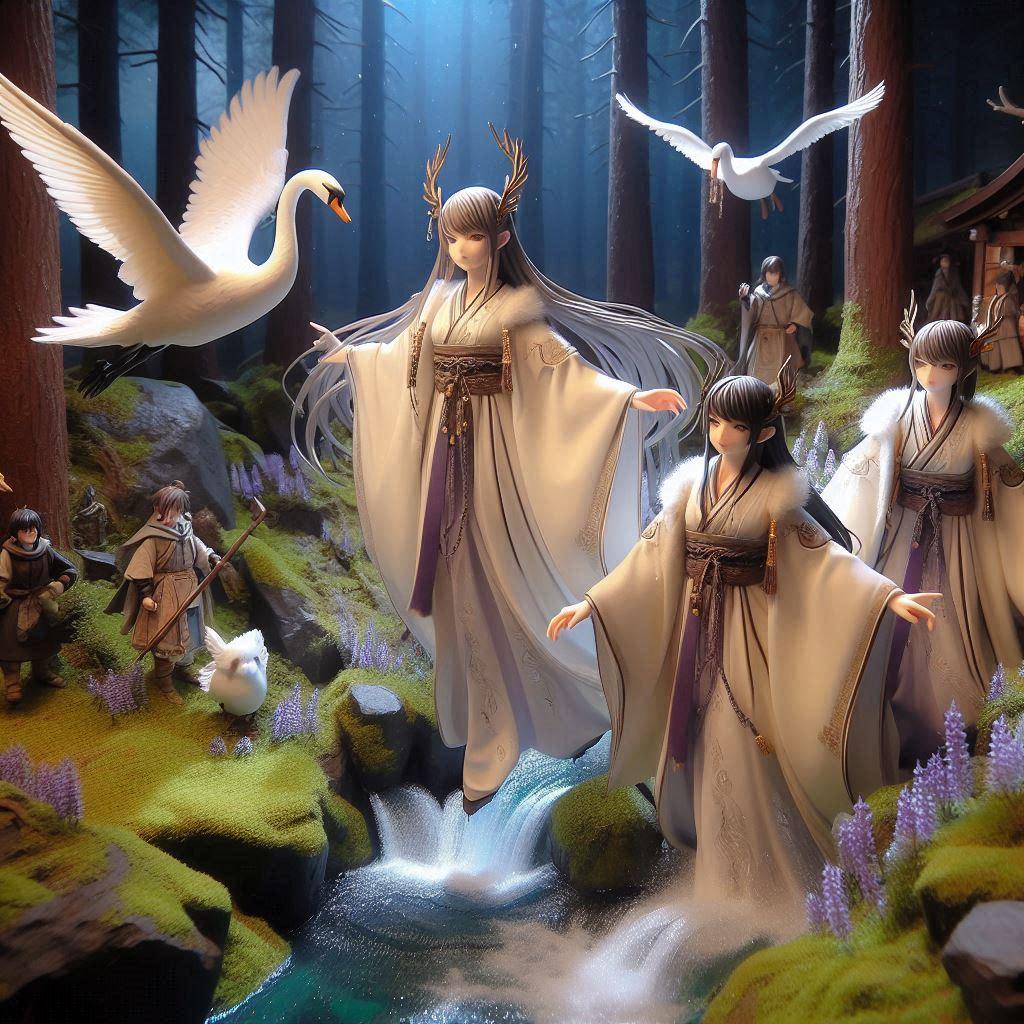 彼らは乙女が脱いだ白鳥の衣を盗んで隠し、彼女らに結婚を迫る。