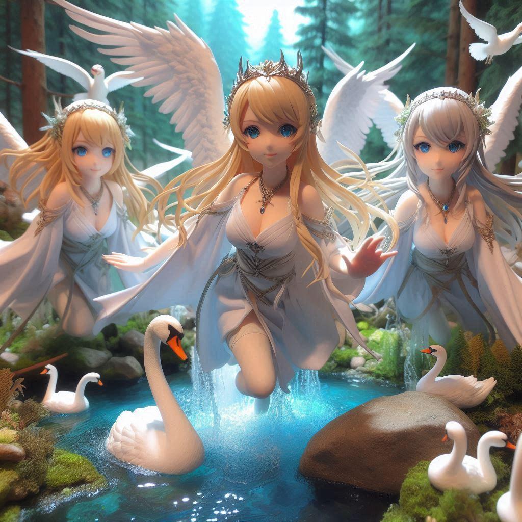 狼の谷に住む三人の若者が、湖で三人の戦乙女の水浴びを覗き見る。