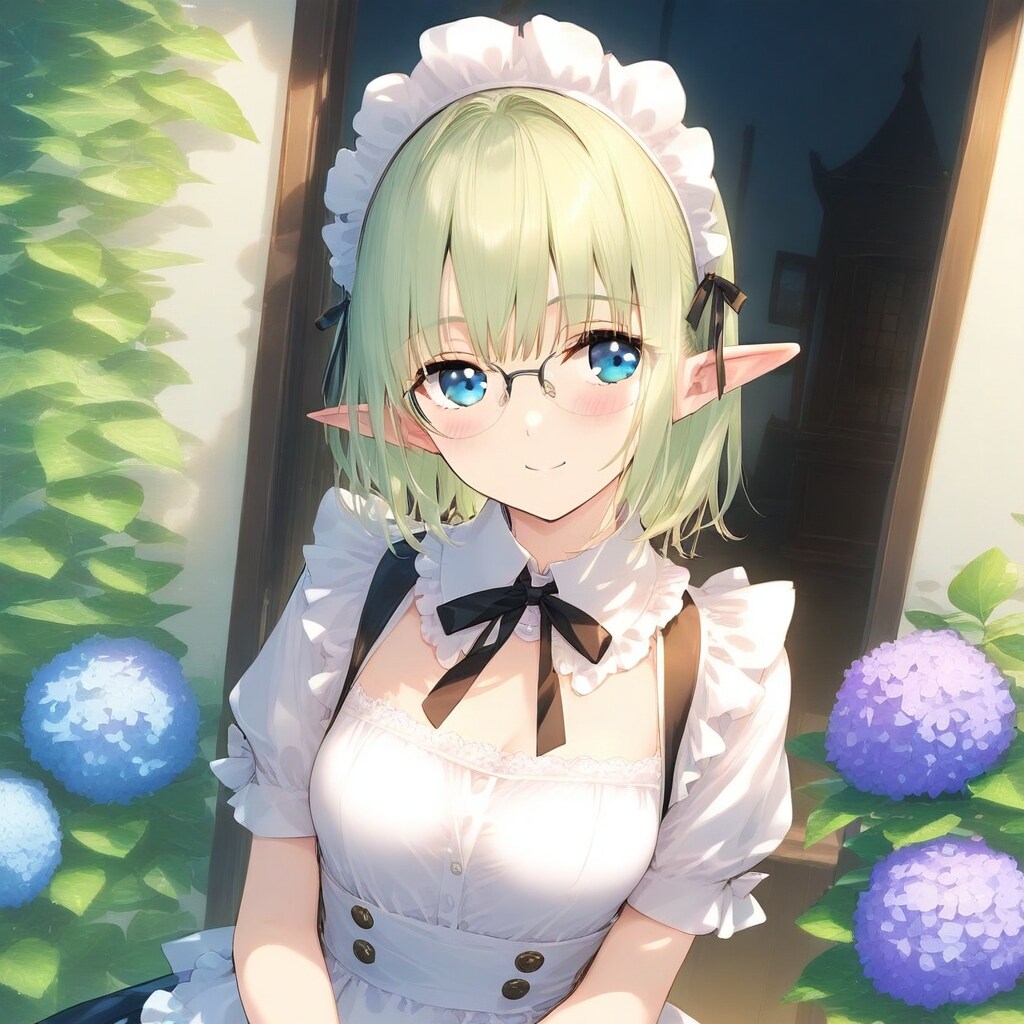 エルフさんといえば森なので、緑色の髪が似合うかなと思い緑色にしました