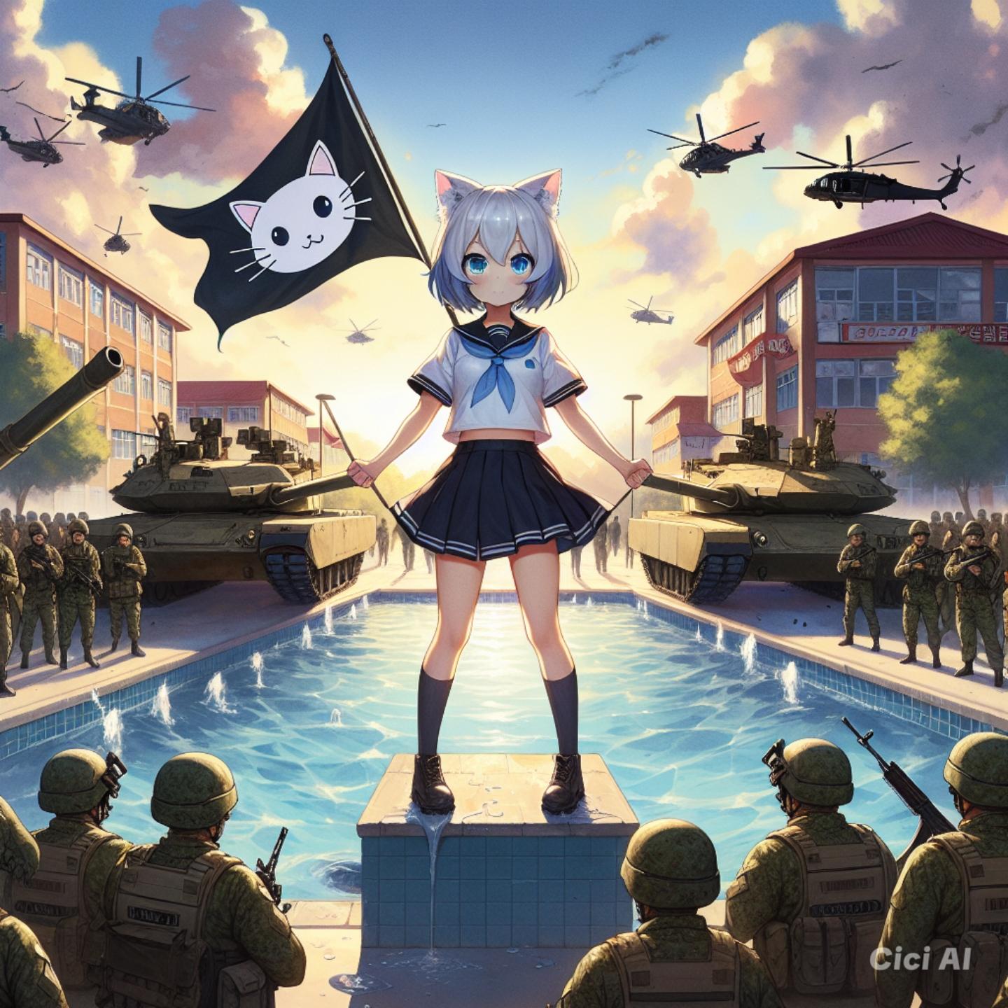 「フハハ!進撃するにゃ!プールは猫耳部のものにゃりよ!」