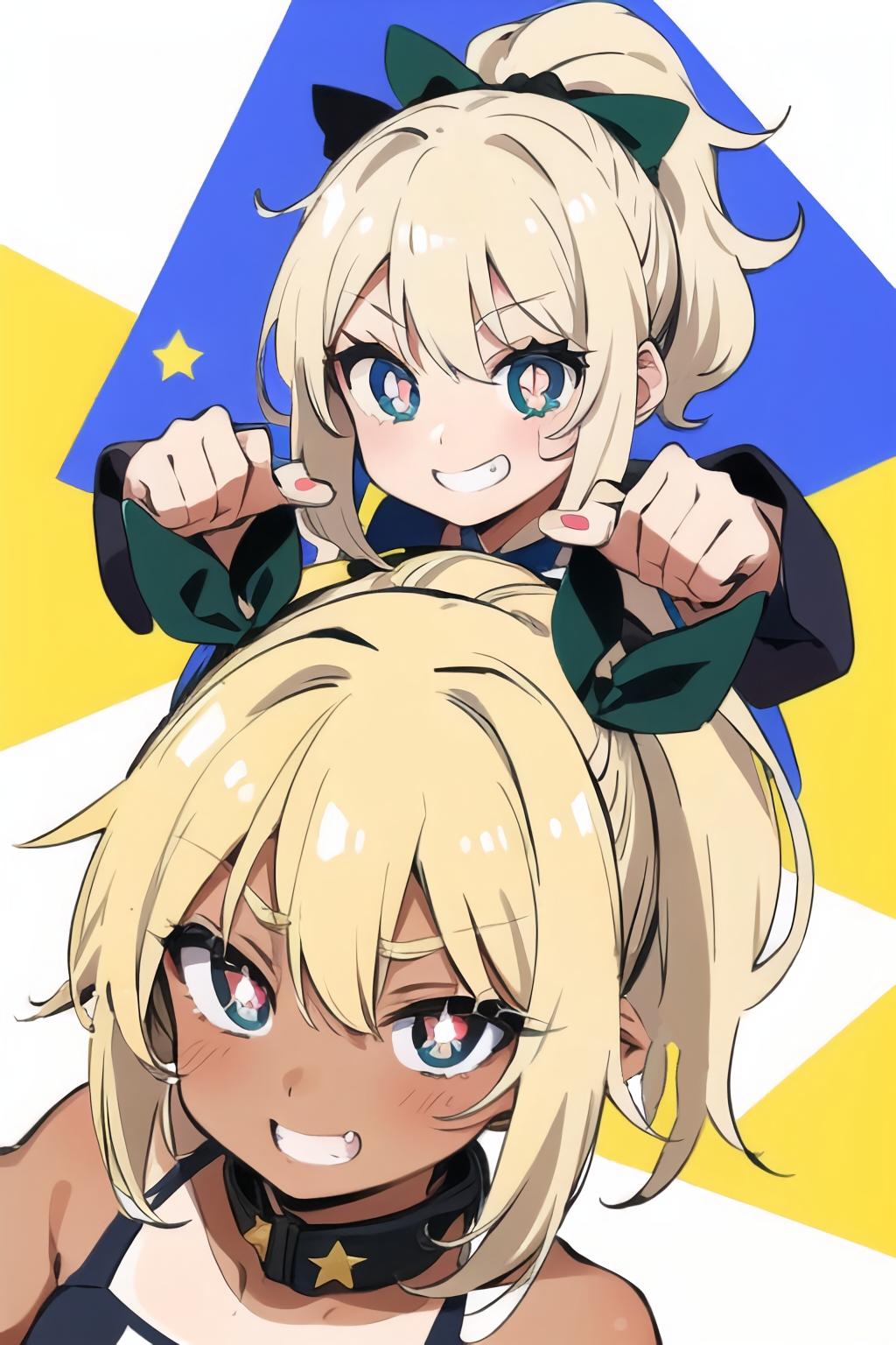 場面や背景なしで生成テストしてたら、フラットな塗りで面白い構図のものが作れましたのでそのまま投稿。