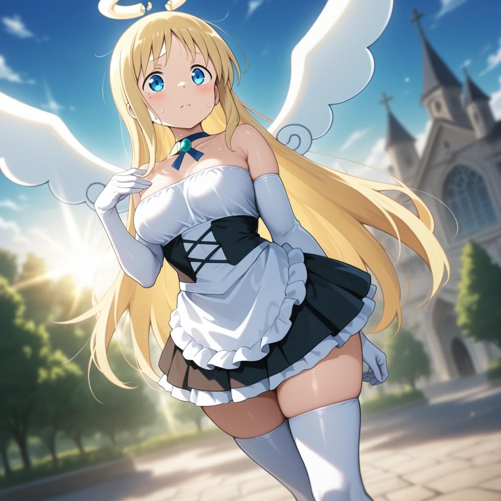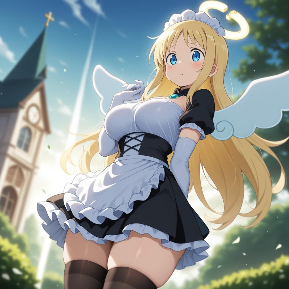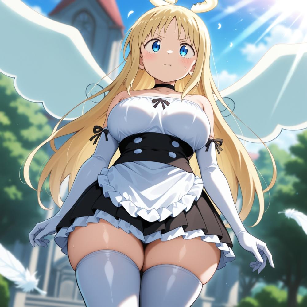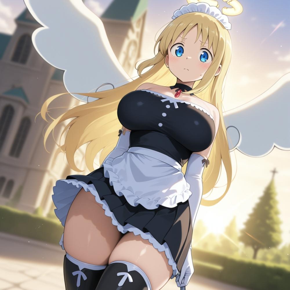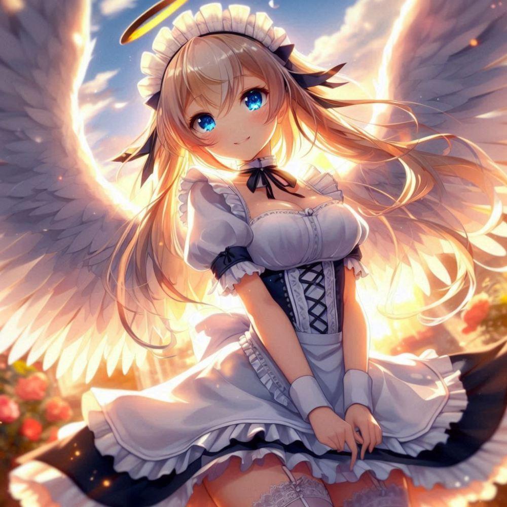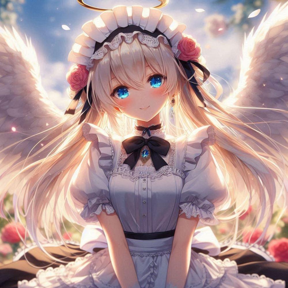 アクリルアニメ風、薔薇と天使メイド魔法少女コスプレ金髪人妻