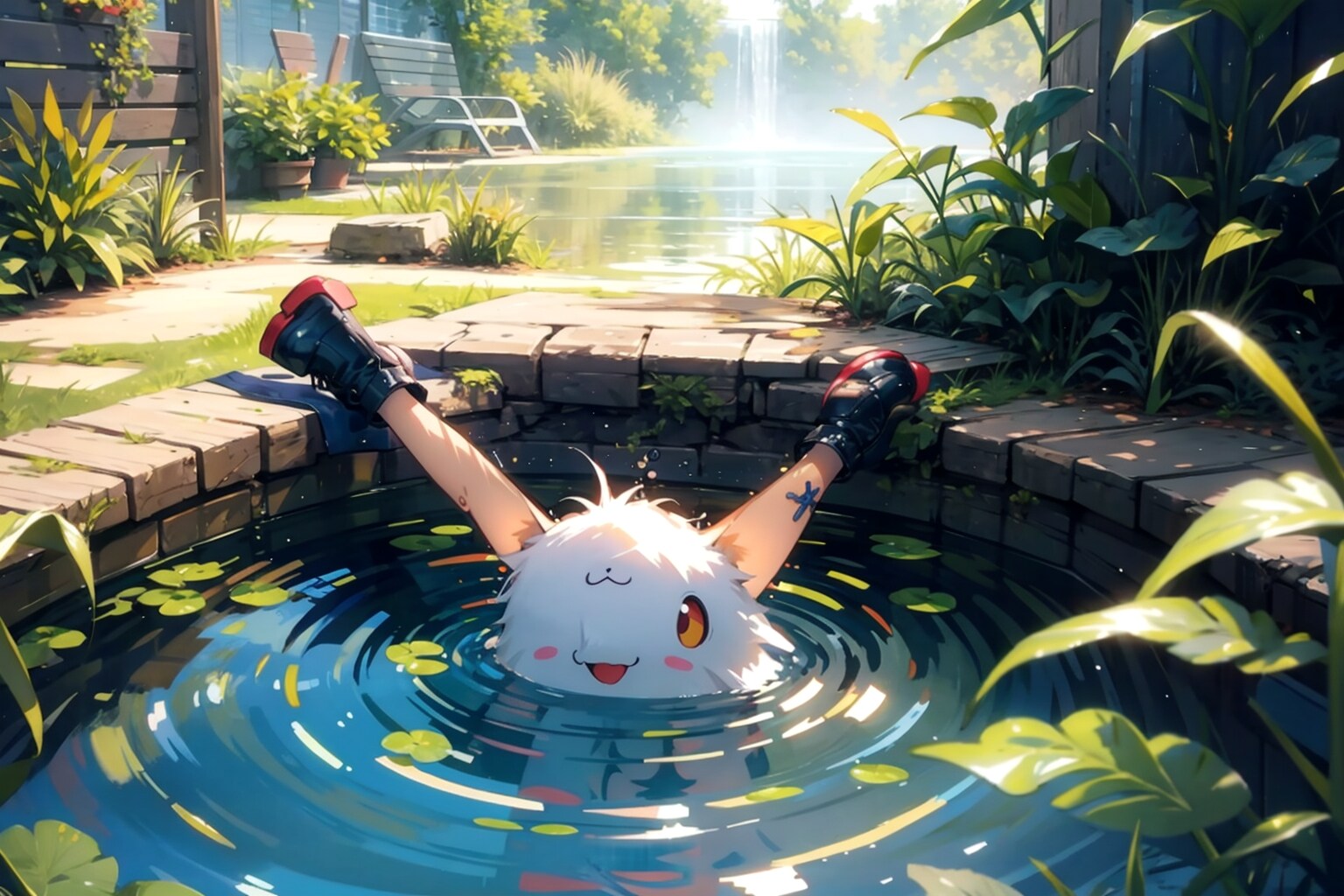池の中に飛び込もうとしたら、頭から突っ込んじゃったよ。