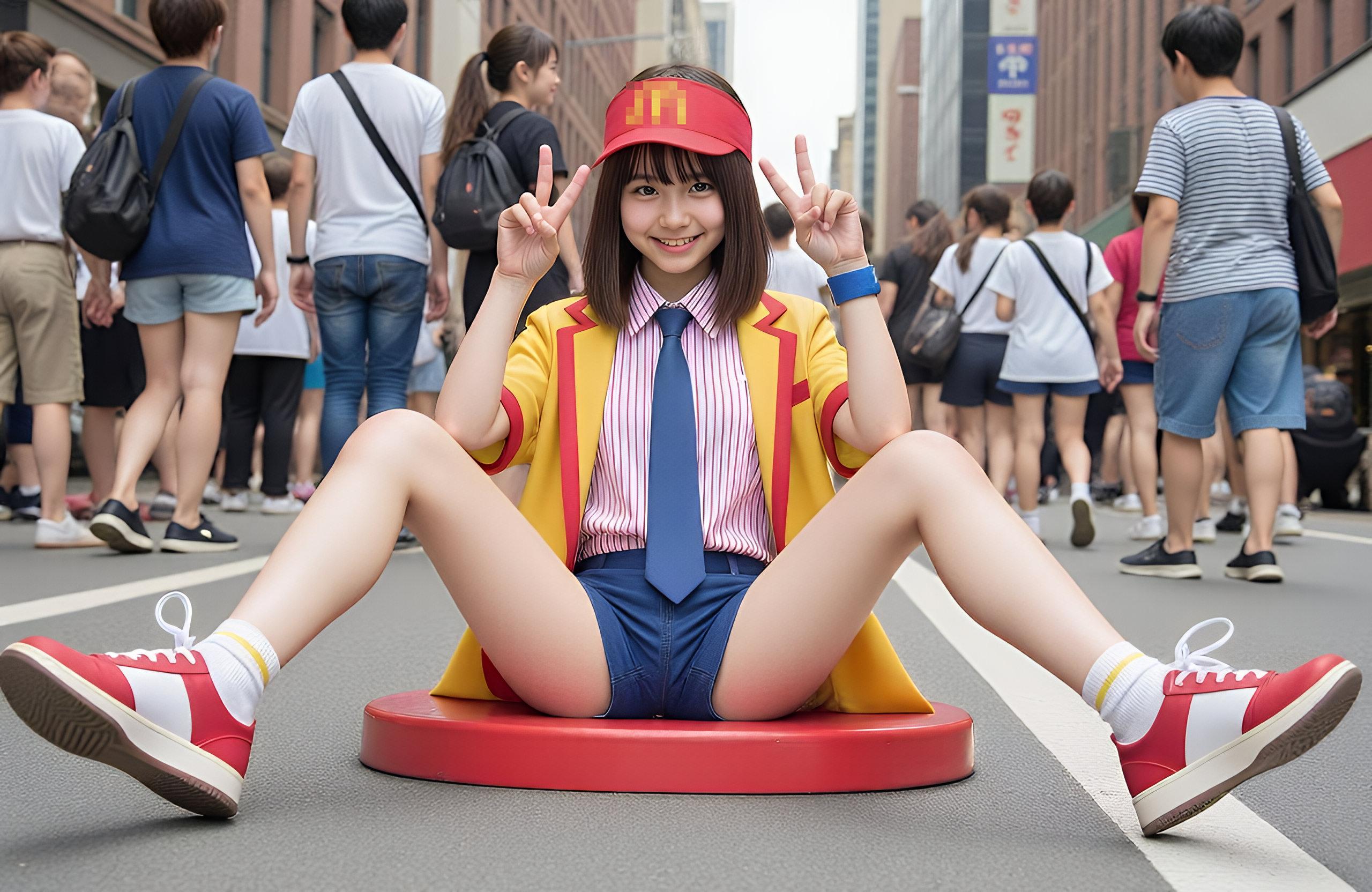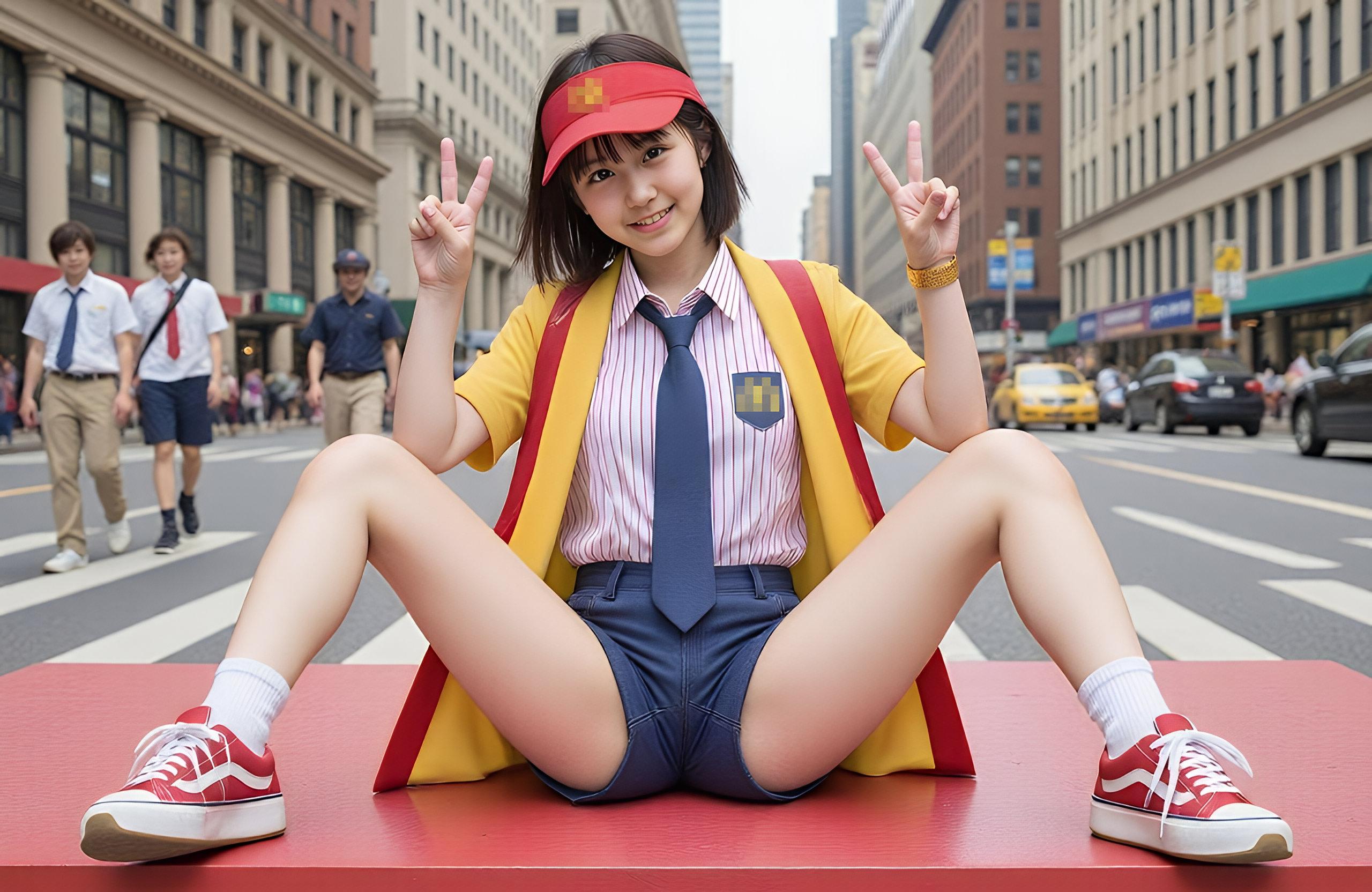 FLUXで出にくいM字開脚を出すLoRAと顔を可愛い系に寄せるLoRA。