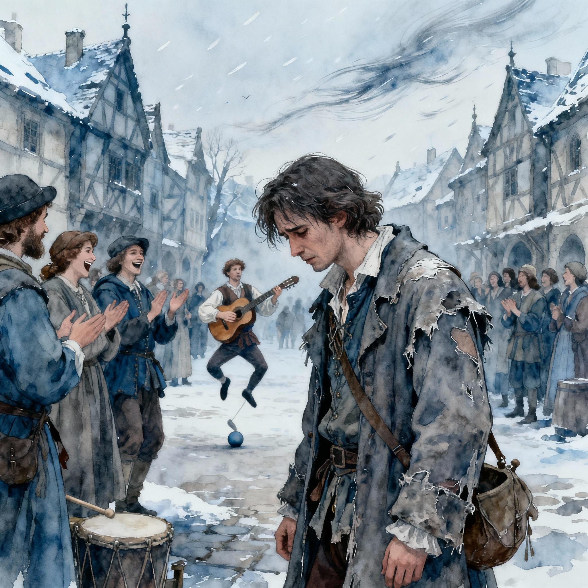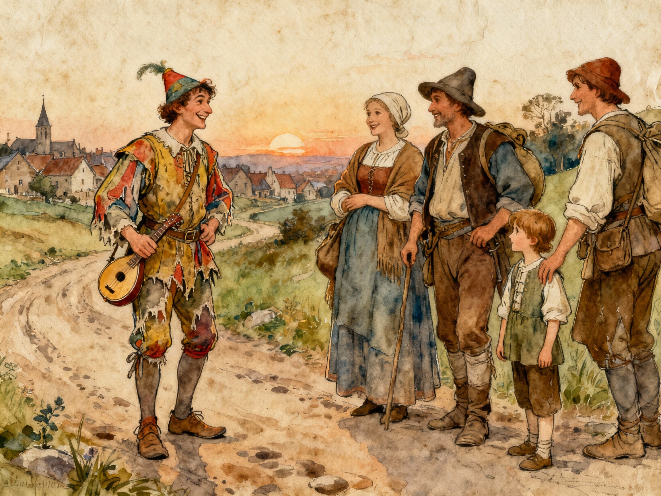 中世ヨーロッパを旅する旅芸人は、各地で日々の生活苦に喘ぐ人々に貴重且つ楽しい娯楽を提供する(1枚目)