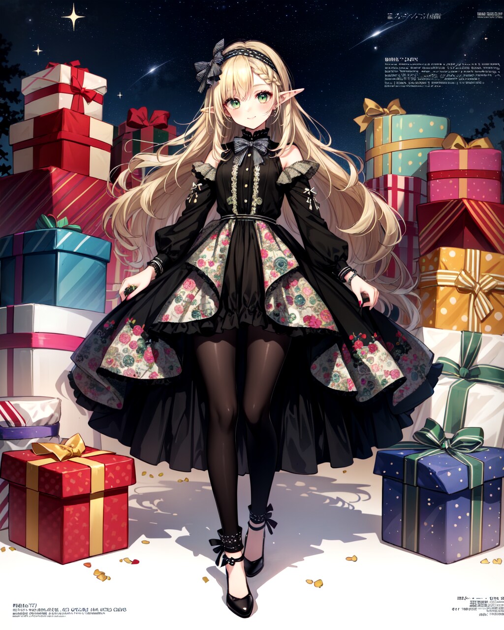 クリスマスプレゼントとドレス姿のエルフ魔女