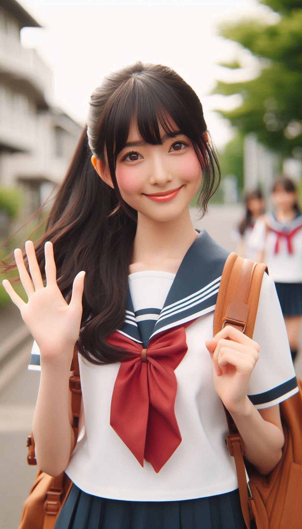 もちろん、動画生成AIのプロンプトは同じ(Waving to friends and saying "good morning")です。