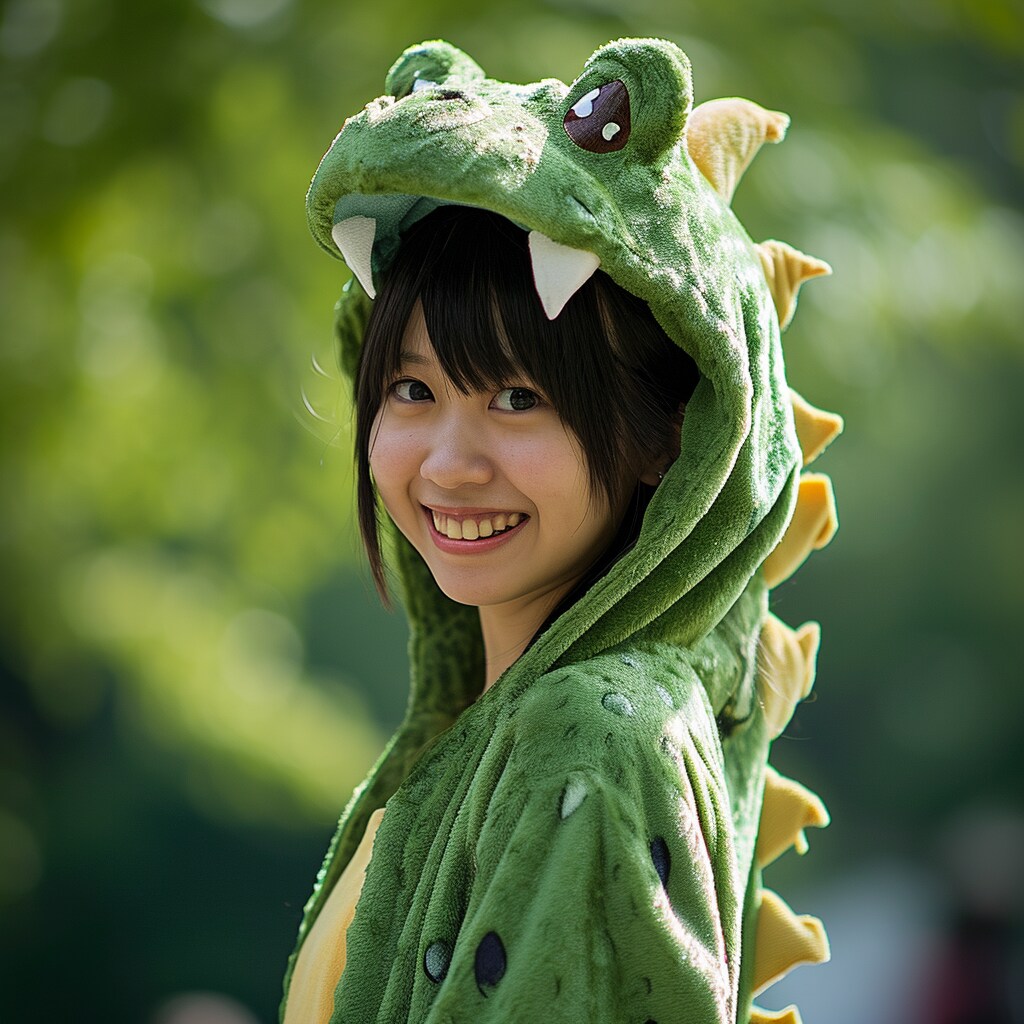 辰年にちなんでドラゴンの着ぐるみを着て撮影しました。