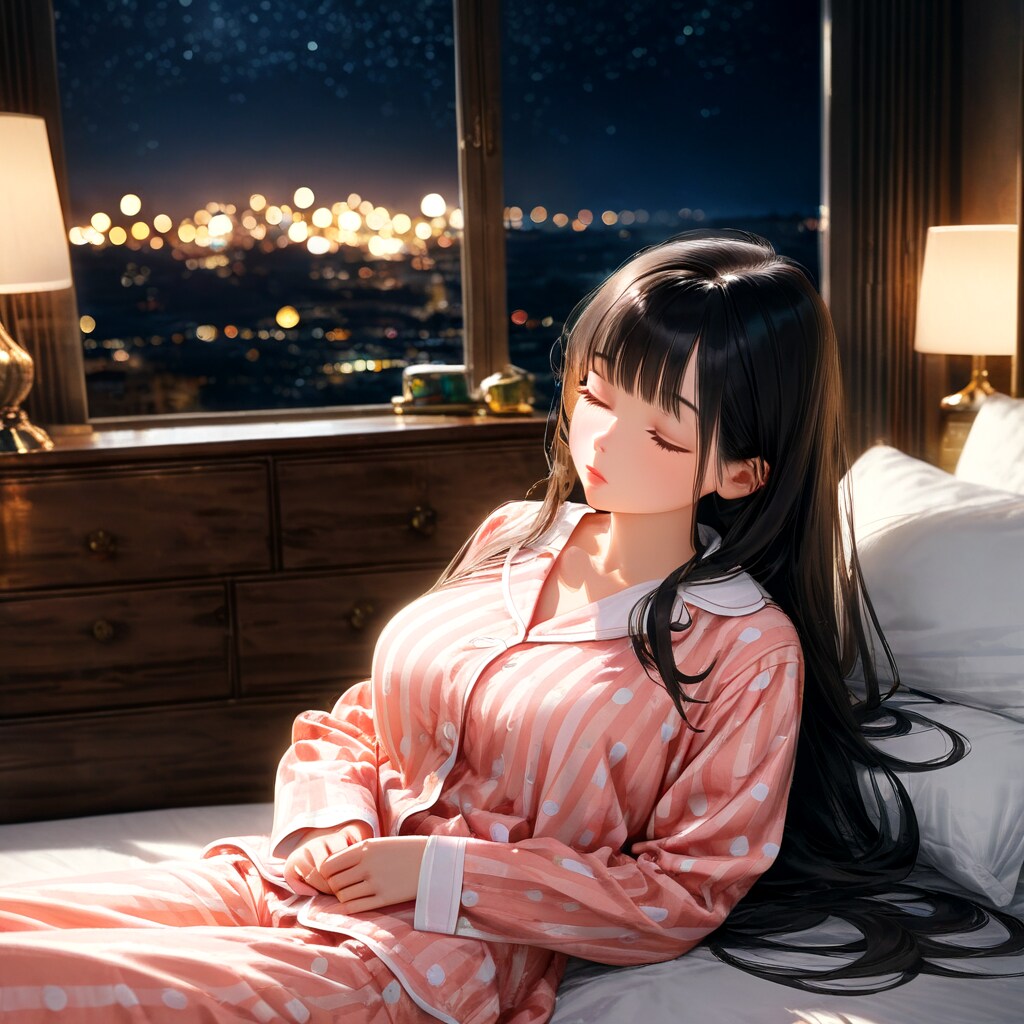 本来は寝相の悪い黒髪美人をAIに要望したのですが、「黒髪美人が寝相が悪いはずがねぇ!!」って反逆されちゃいました(苦笑)