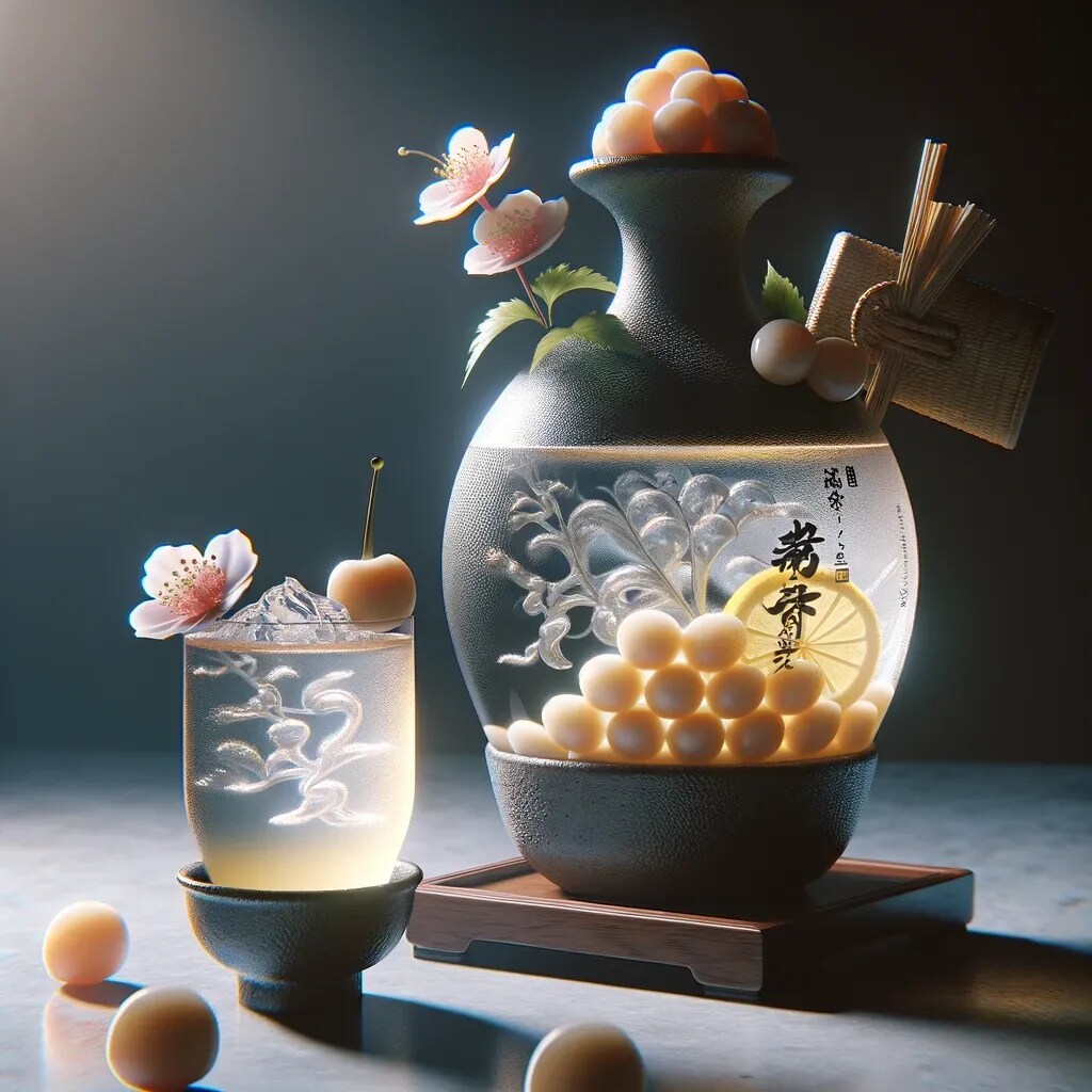 本日は日本酒ベースです。案の定おちょこを描画できず、ぐいぐい行くとあっという間に回りそうな、異性を酔わせる必殺メニューの様相になっております。お団子つけてますので、お月見に誘う感じでお連れさまに一杯、いかがですか?