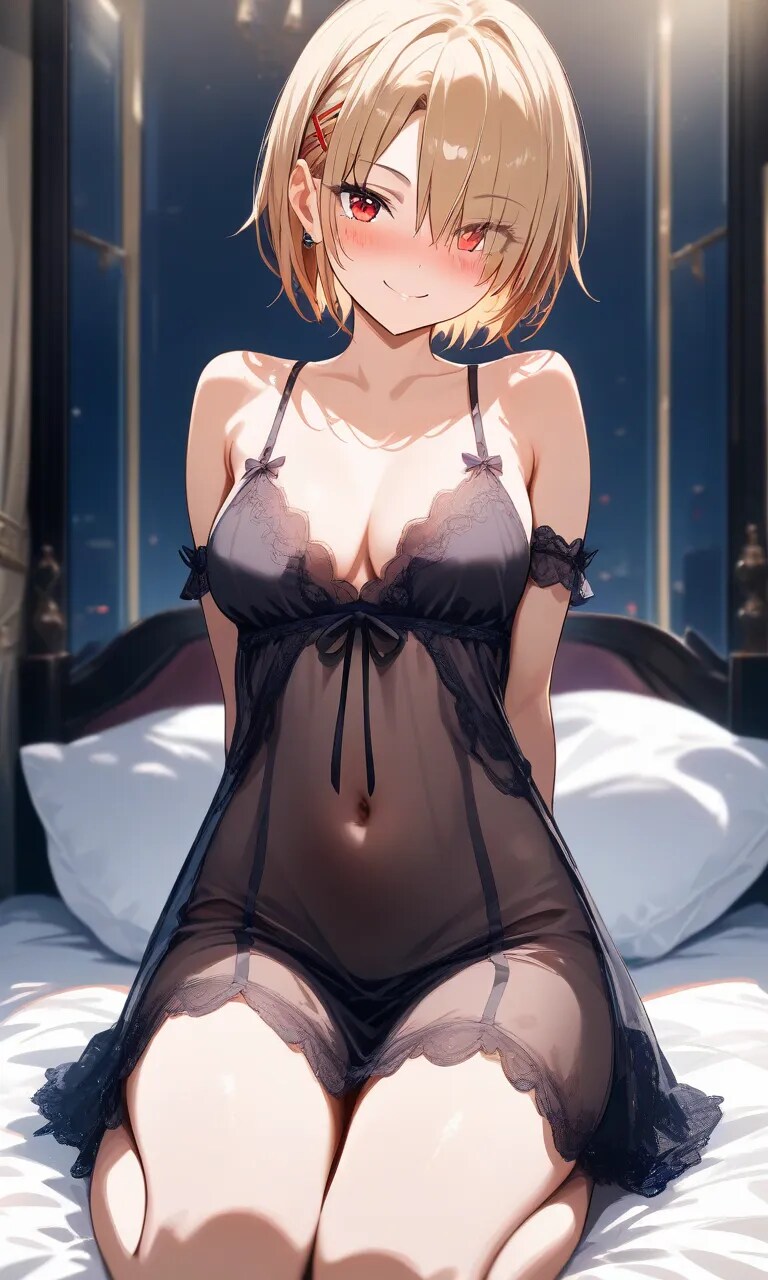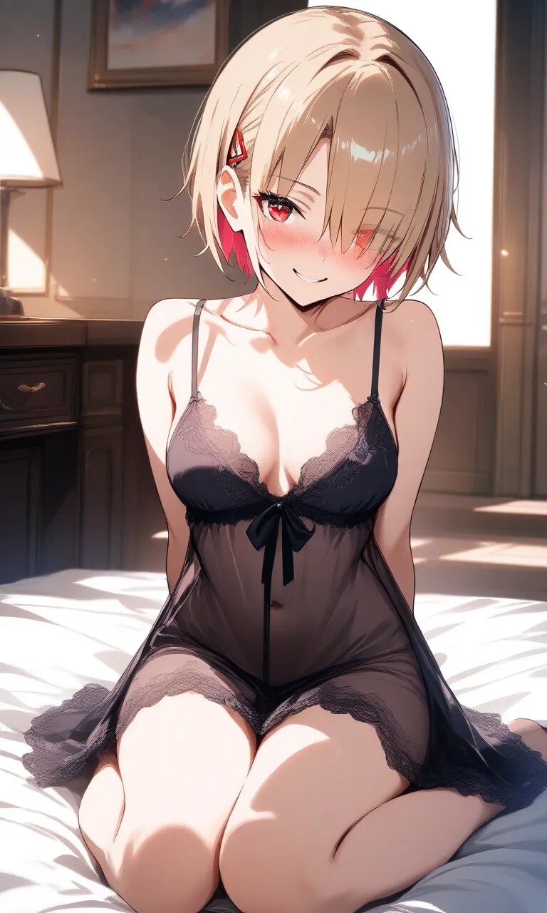 ネグリジェ🌃👗姿でベッドに座る茅森月歌⚔️❤️②