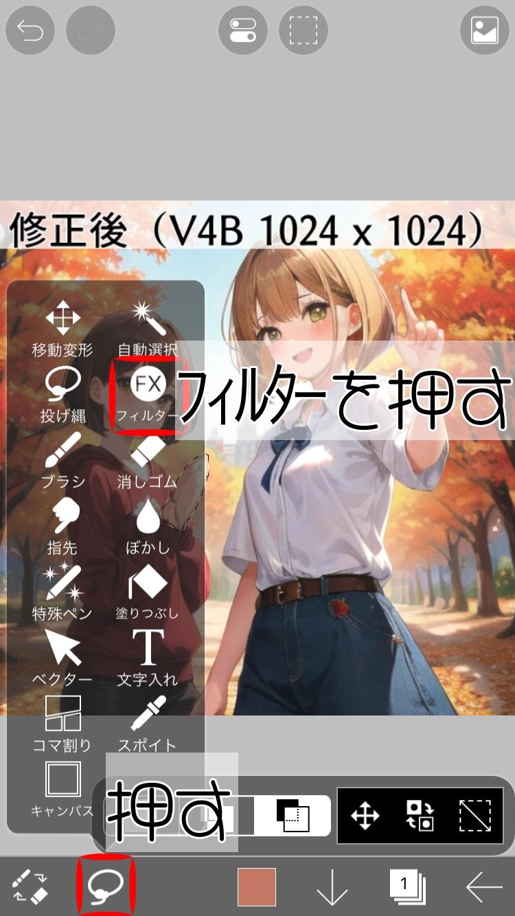 使う機能:ツールバーの投げ縄ツール、フィルター