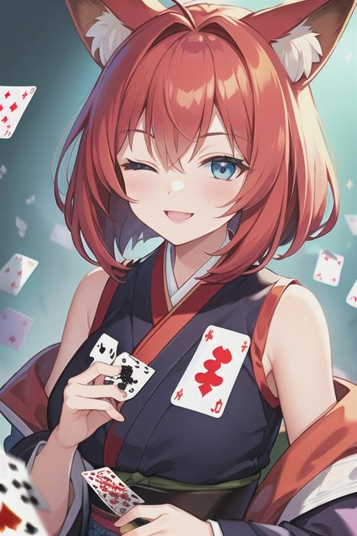 1枚目はPRISMでプロンプトにplaying card shurikenとplaying cardをいれてみました。puiが残り僅かなので比較的に普段のカエデと近いものが作れるV4Bでプロンプトをplaying card shurikenのみをいれて生成したのが2枚目〜3枚目になります、。