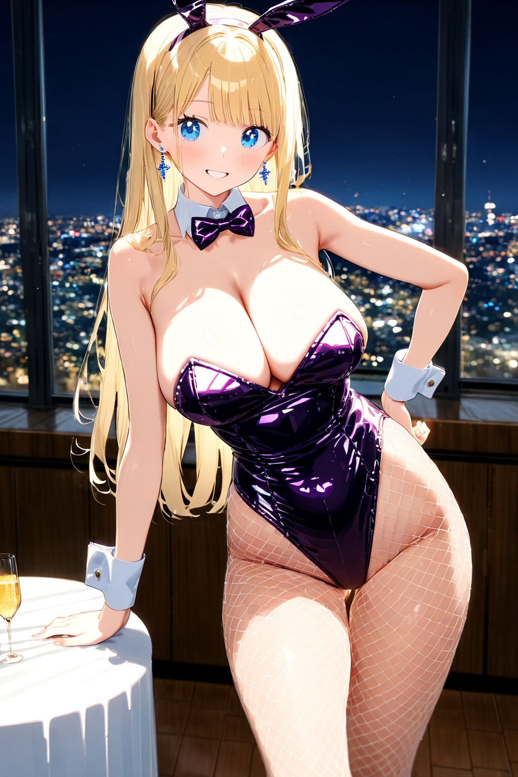 紫バニーさん:"large breasts"、黒バニーさん:指定なし