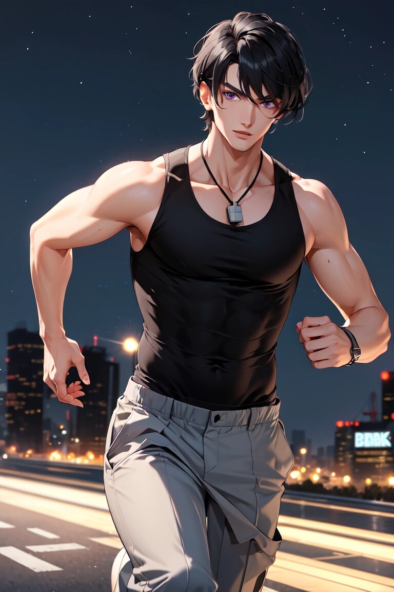 ではまた、タンクトップな、走る黒髪短髪男性をご覧ください!!