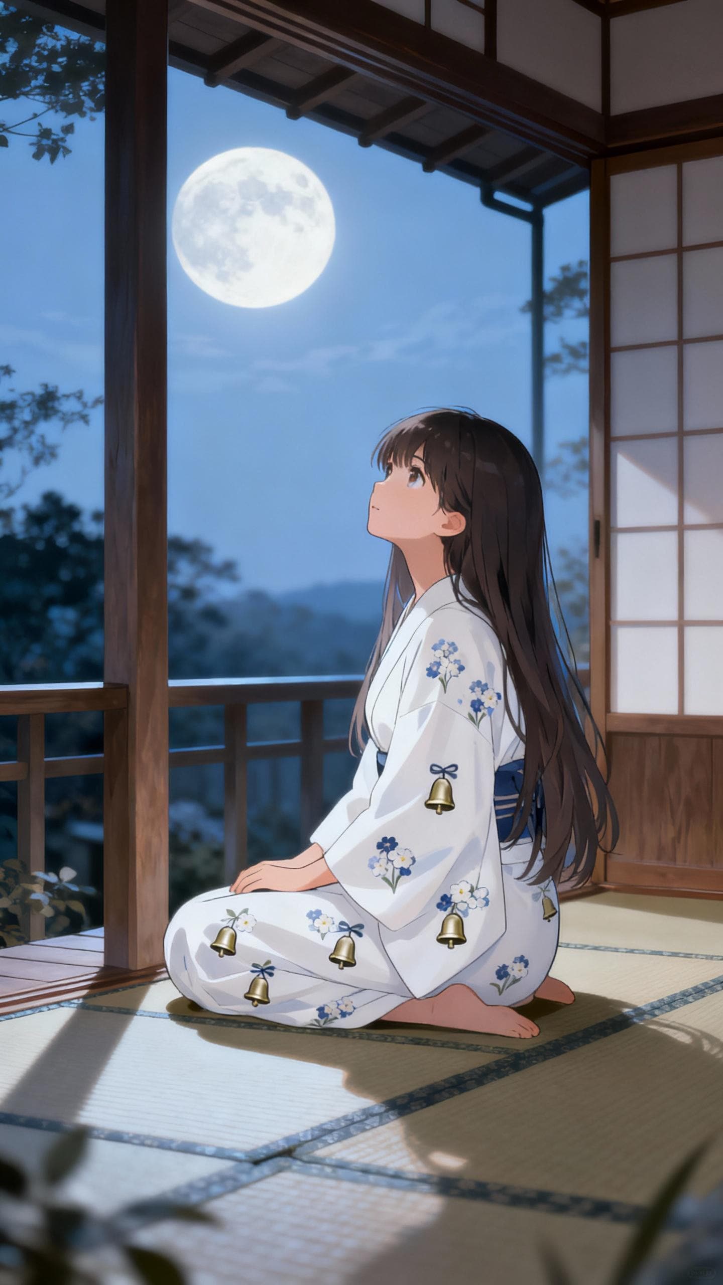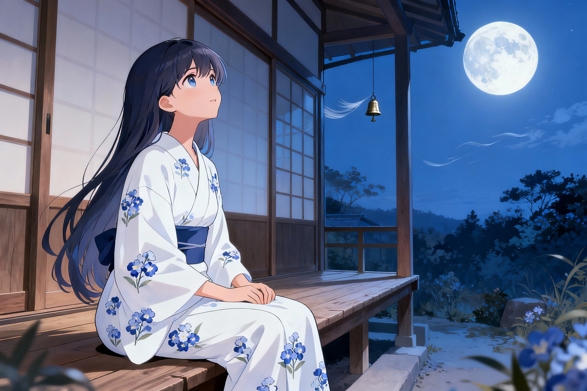プロンプトの1行目にある「bellflower patterned yukata」って、本当は「桔梗柄の浴衣」ってことなんだけどね?