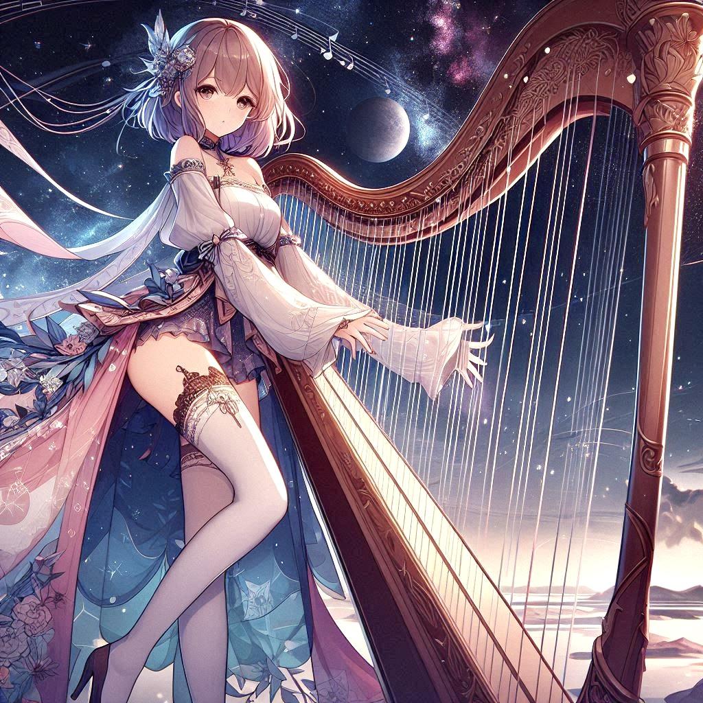 ハープを奏でる美女