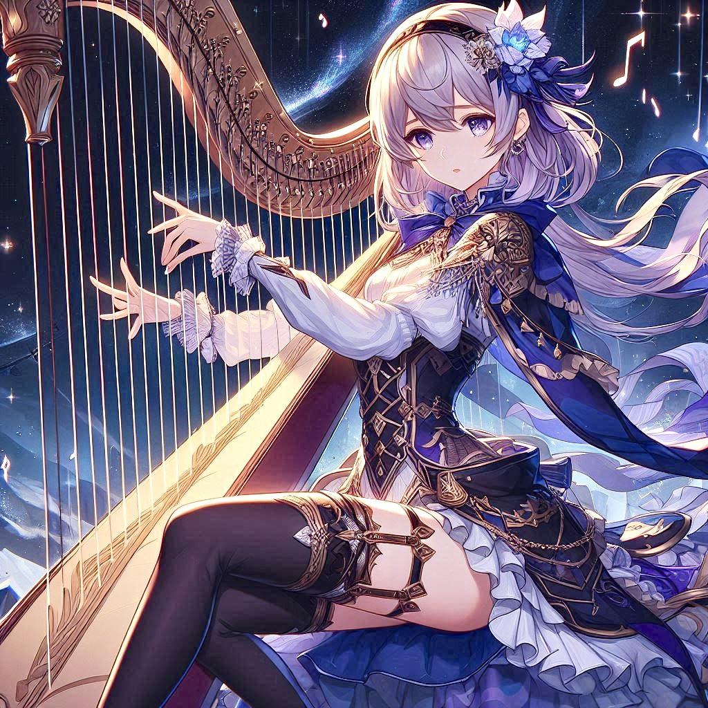 ハープを奏でる美女です。
