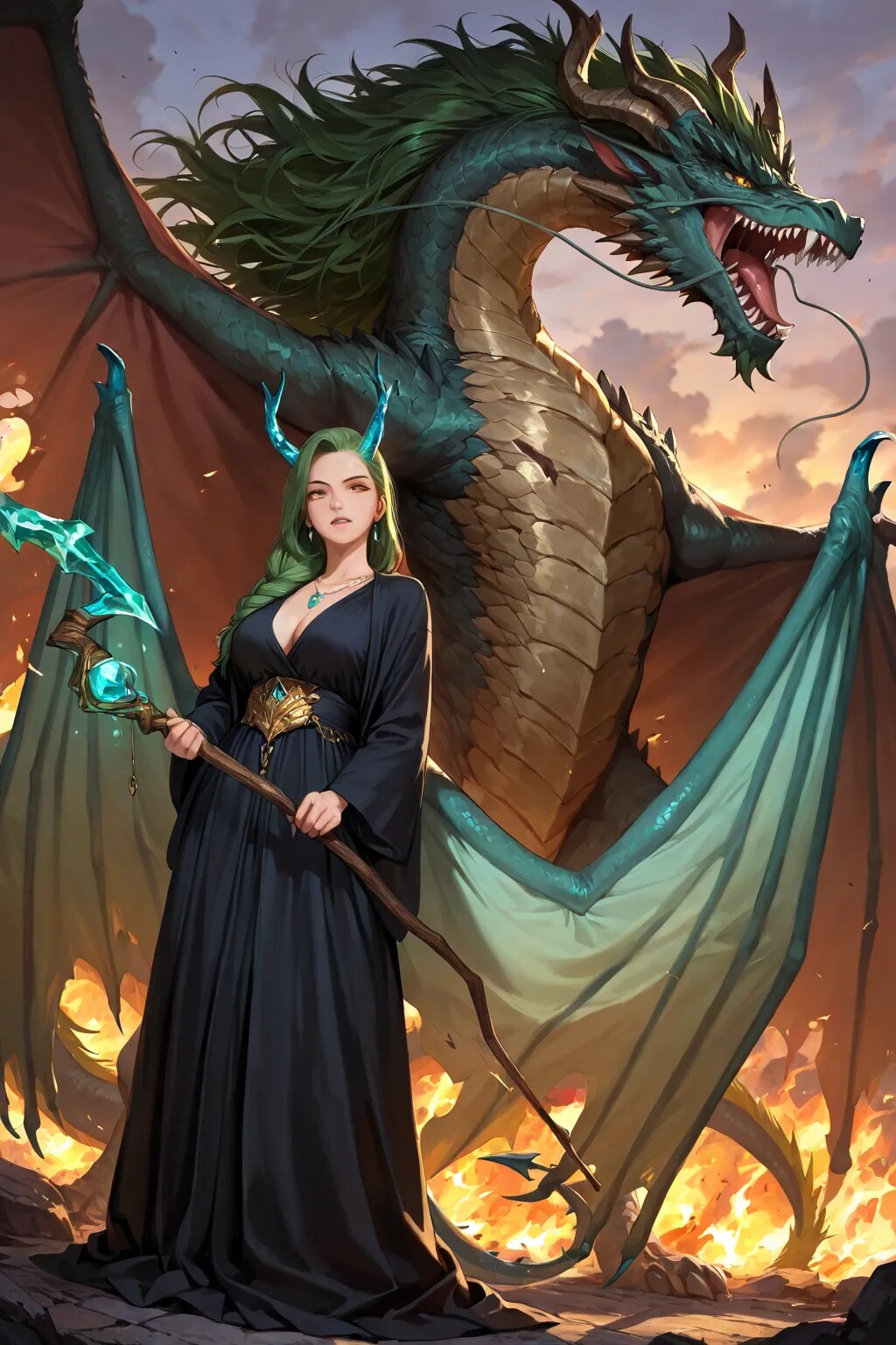 戦場では、魔角が竜炎を引き込み、黒衣がわずかに揺れるだけで