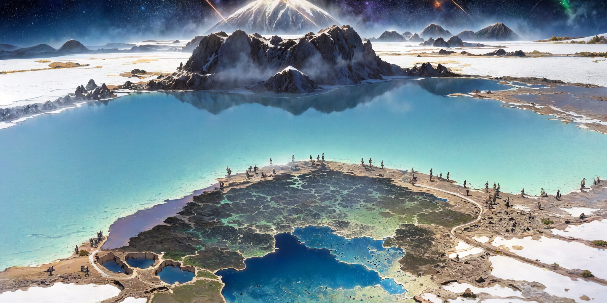 この湖は、その透明度の高さと湖面に映る山の美しさが特徴的で、調査隊員たちは思わず息を呑んだ。