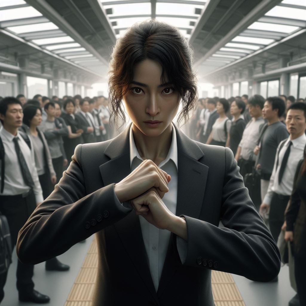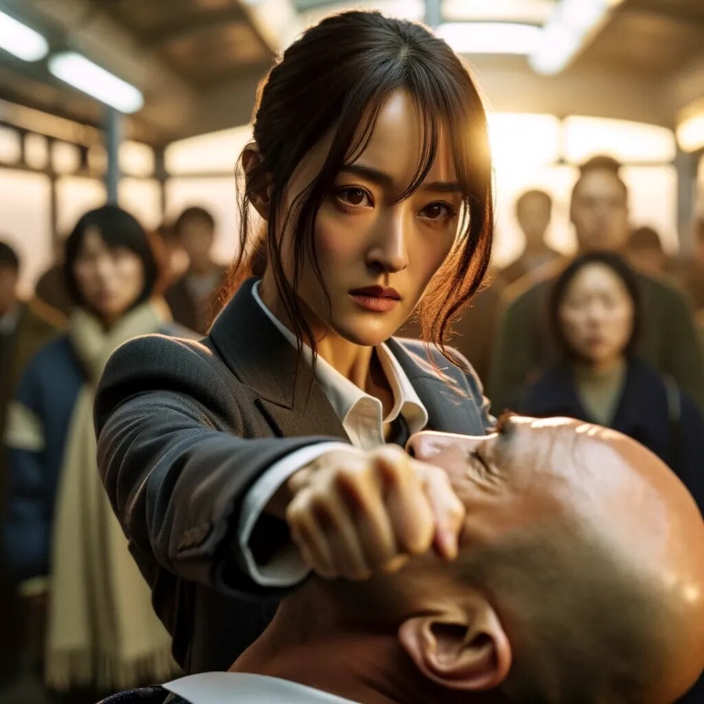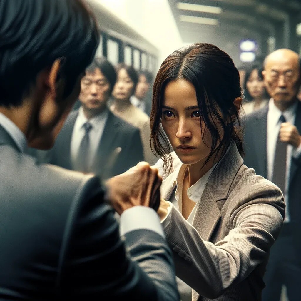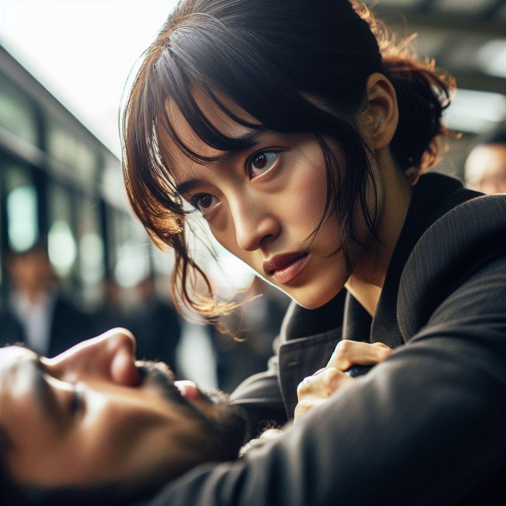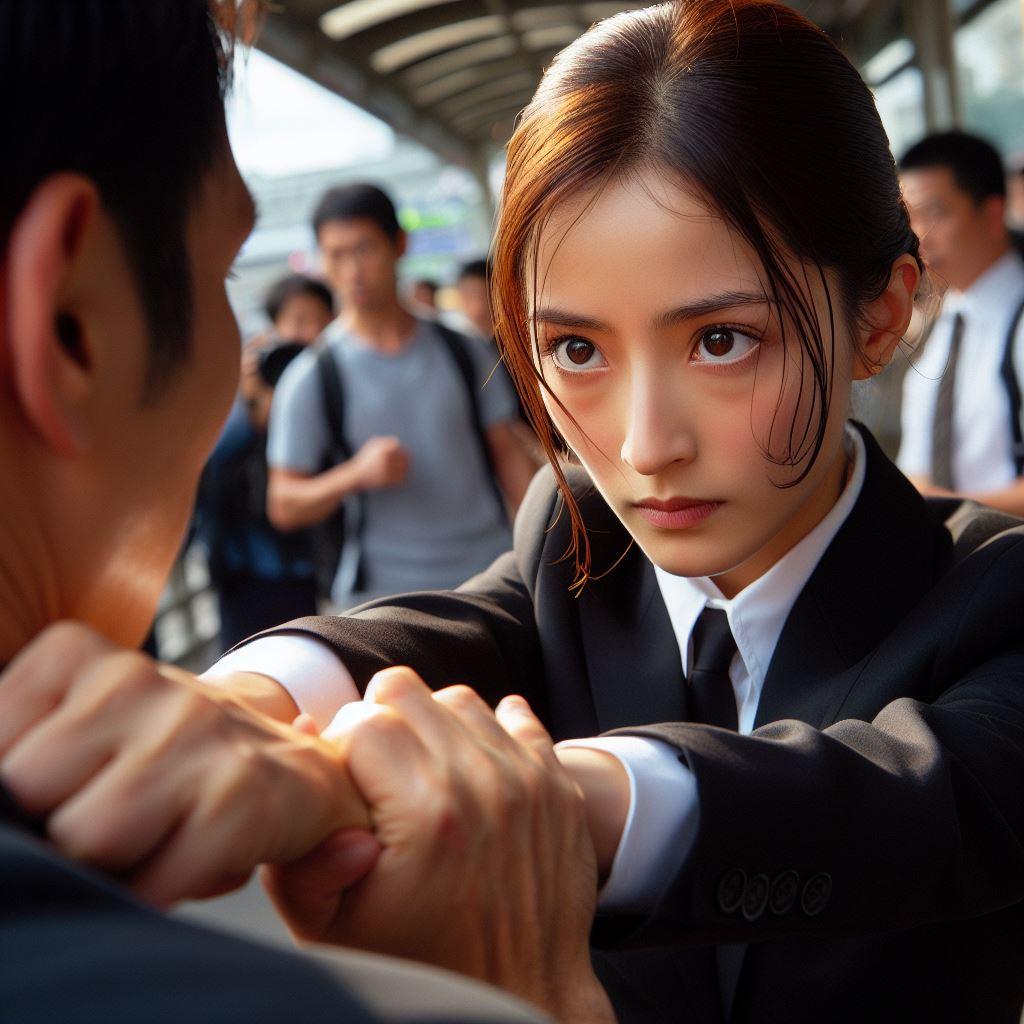 リナが公安関係者だと察してうろたえる産業スパイ。逆上して襲いかかるが警察仕込みの護身術で取り押さえられてしまう。