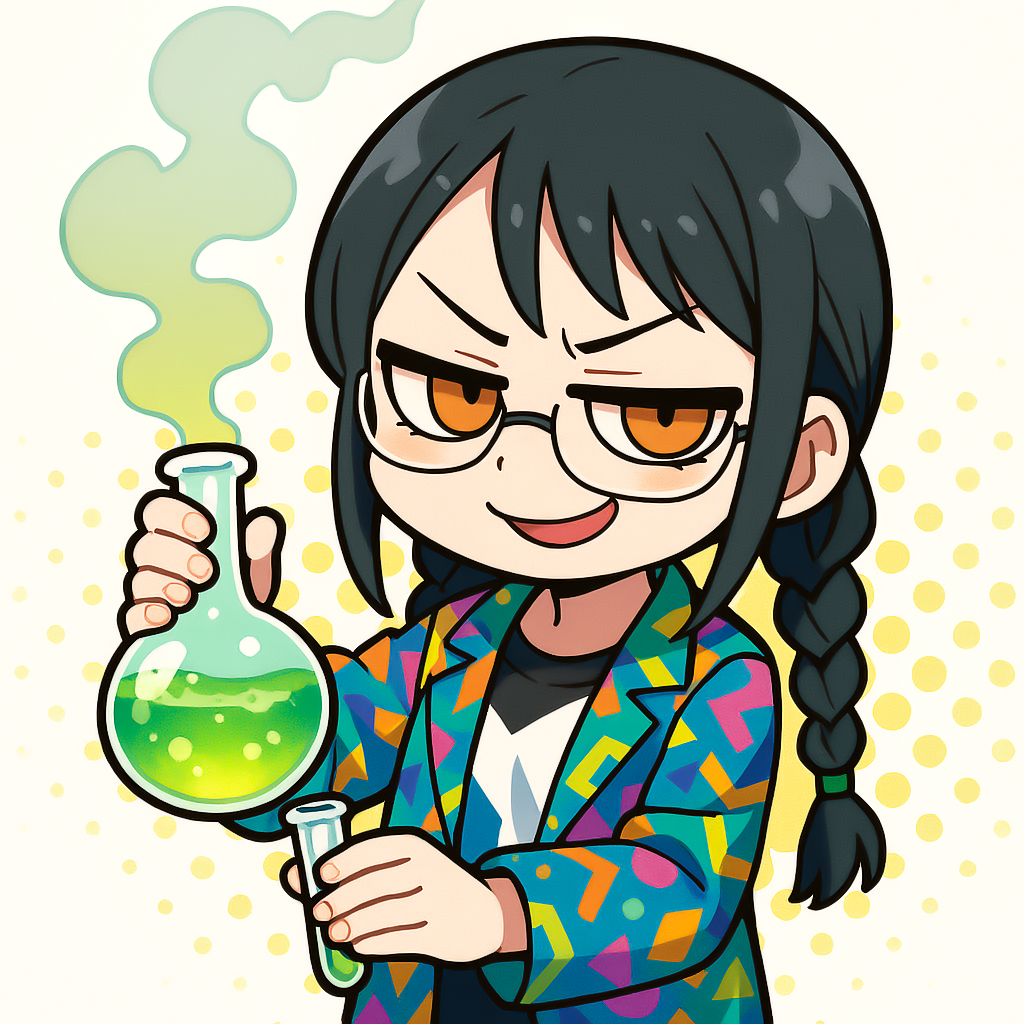 怪しい薬(プロンプトを読むと脳内にイメージが広がる)を作っているマッドサイエンティストのLINEスタンプ