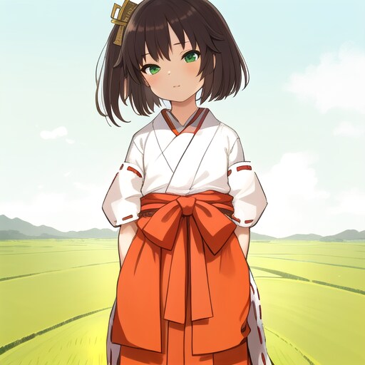 例によってpixAIでリアルタイムの下絵から。巫女さんと背景は別々に生成して合成。