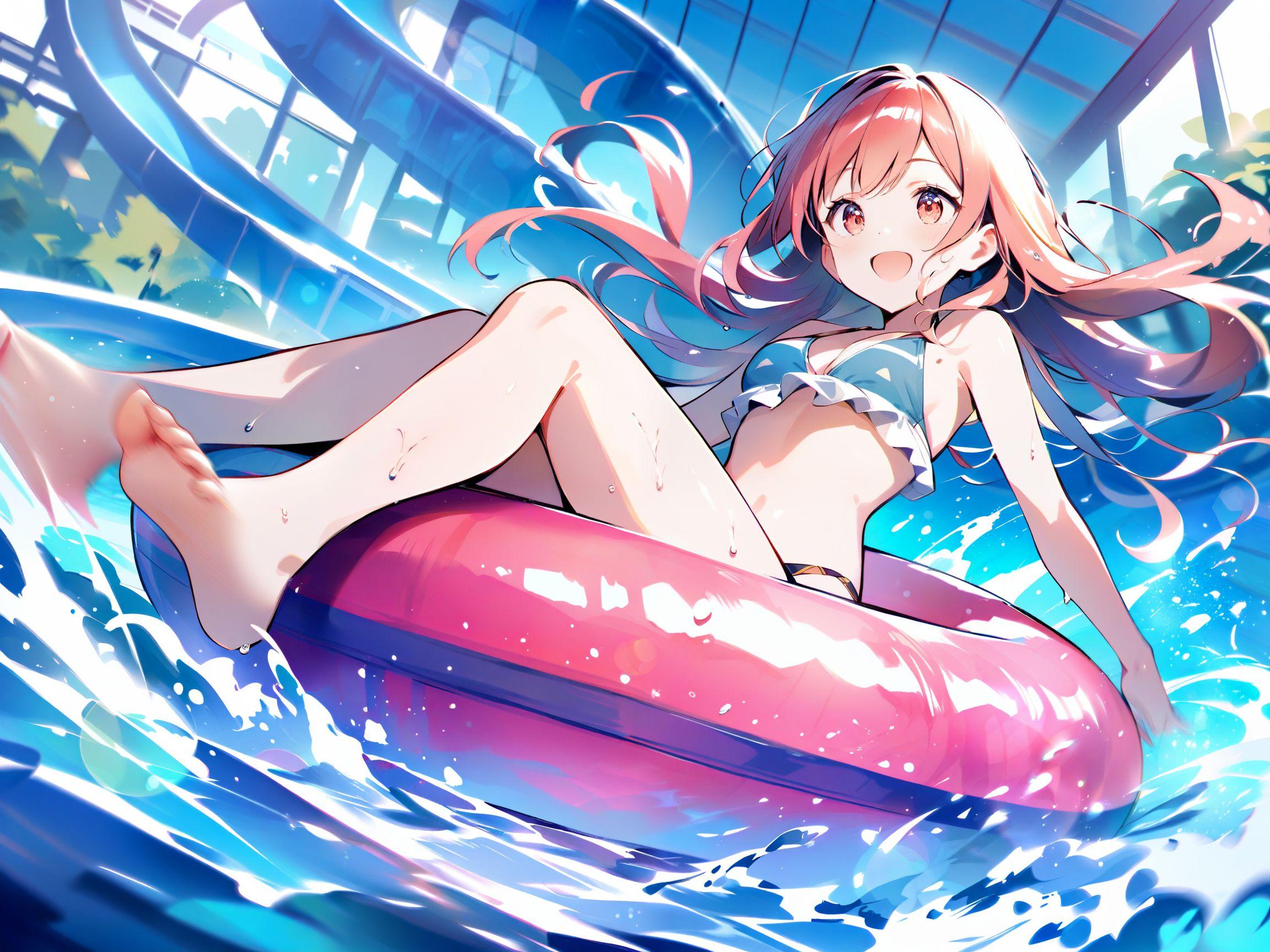 ウォータースライダーは縦長の絵が多いかと思いますが、あえて横長に挑戦してみました。