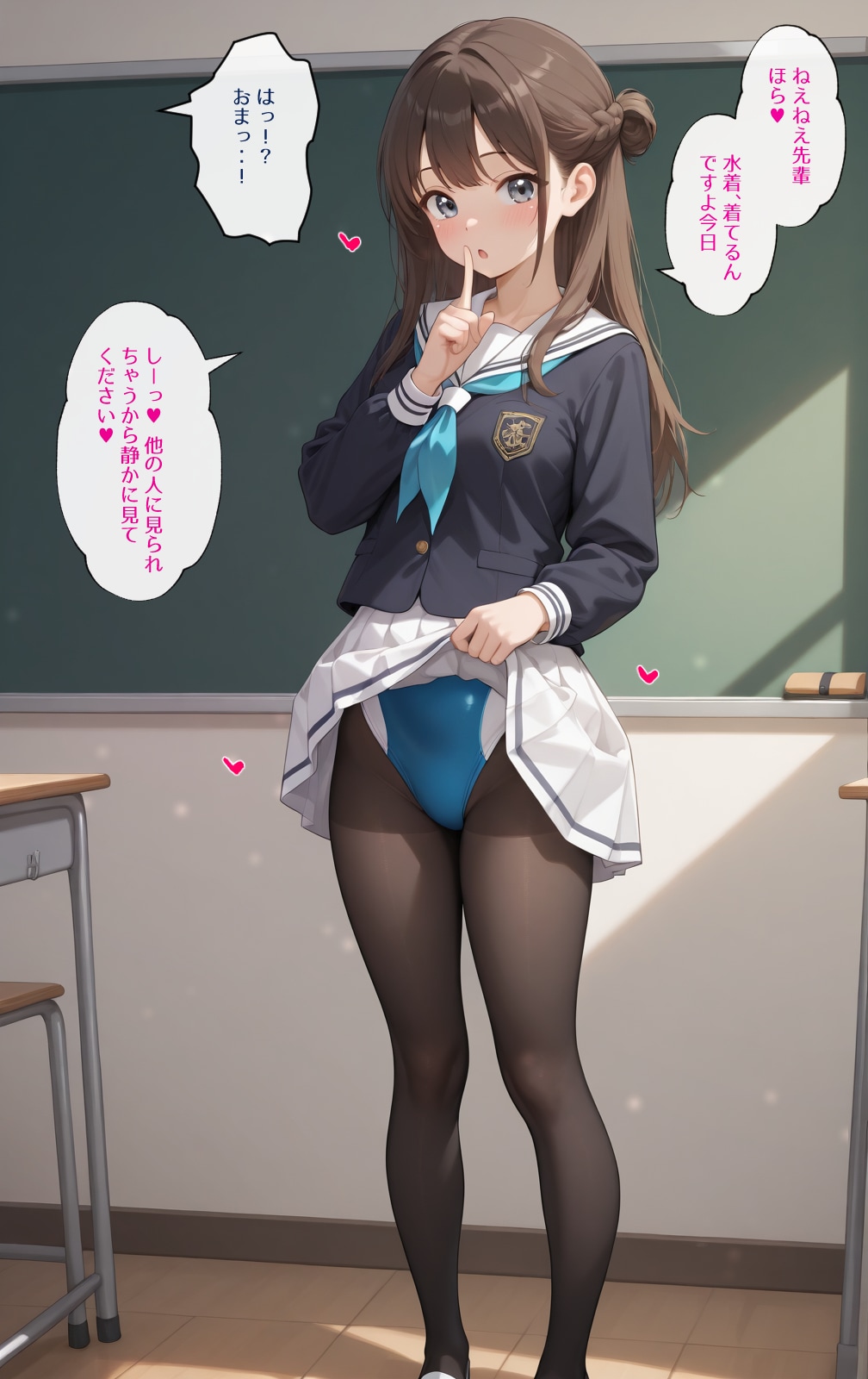 制服の下に水着を着てきたことを報告する後輩ちゃん