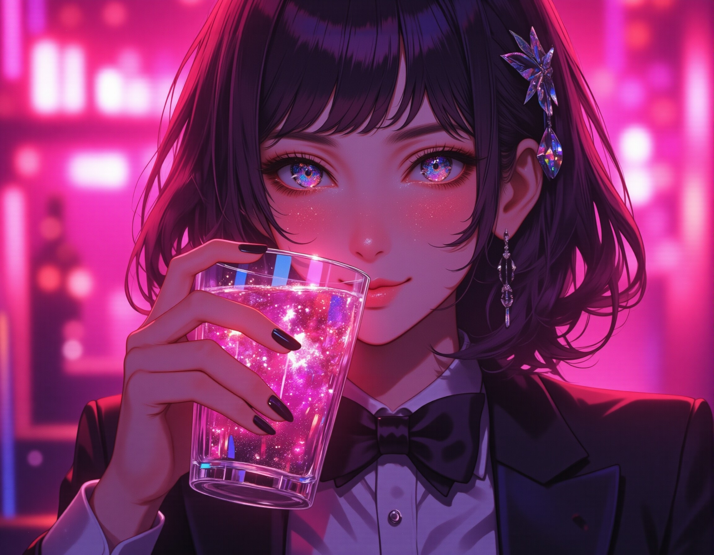 Steps: 30, Sampler: Euler, Schedule type: Simple, CFG scale: 1, Distilled CFG Scale: 3.5, Seed: 48091766, Size: 1152x896, Model hash: 2abace2516, Model: lyhAnimeFlux_v4Niji, Denoising strength: 0.4, ADetailer model: face_yolov8n.pt, ADetailer confidence: 0.3, ADetailer dilate erode: 4, ADetailer mask blur: 4, ADetailer denoising strength: 0.4, ADetailer inpaint only masked: True, ADetailer inpaint padding: 32, ADetailer version: 24.11.1, Hires upscale: 2, Hires steps: 10, Hires upscaler: 4x-UltraSharp, Lora hashes: "ral-crystalz: 04954de5fcad, ck-holographic-glitter-000015: 90aa4411c77a", Version: f2.0.1v1.10.1-previous-528-ge55cde9b, Diffusion in Low Bits: Automatic (fp16 LoRA), Module 1: ae, Module 2: clip_l, Module 3: t5xxl_fp16