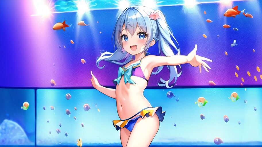 青色、水着、水槽、スポットライト