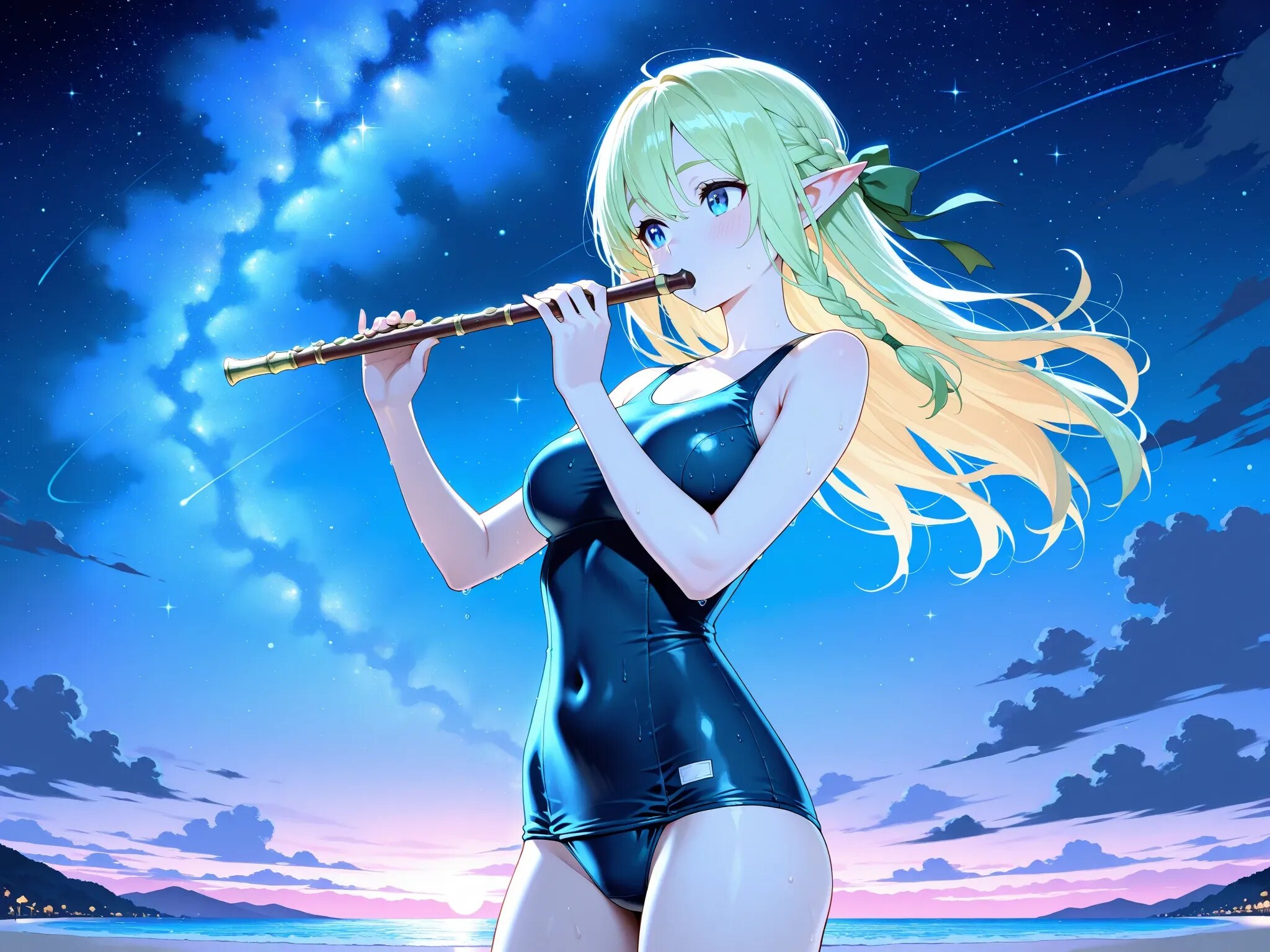 海サマーフェスもいよいよ終盤。夜が更け、お祭りが静かに幕を下ろそうとする頃——そんな情景の中に響くフルートの音色をイメージしました。…実際に吹いている曲と格好で台無しですがw