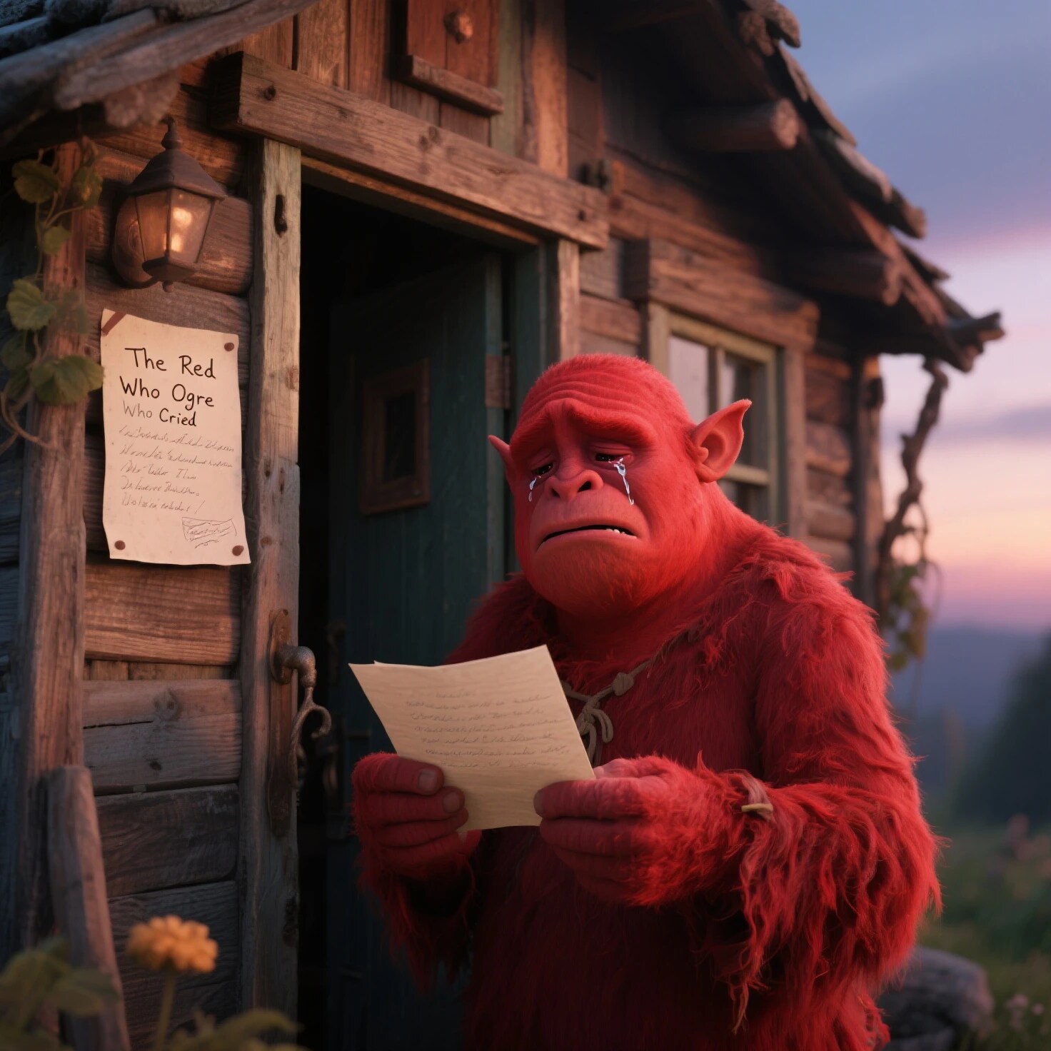 青鬼の家を尋ねたら入口の脇に手紙が貼ってありそれを読んだ赤鬼が涙を流す