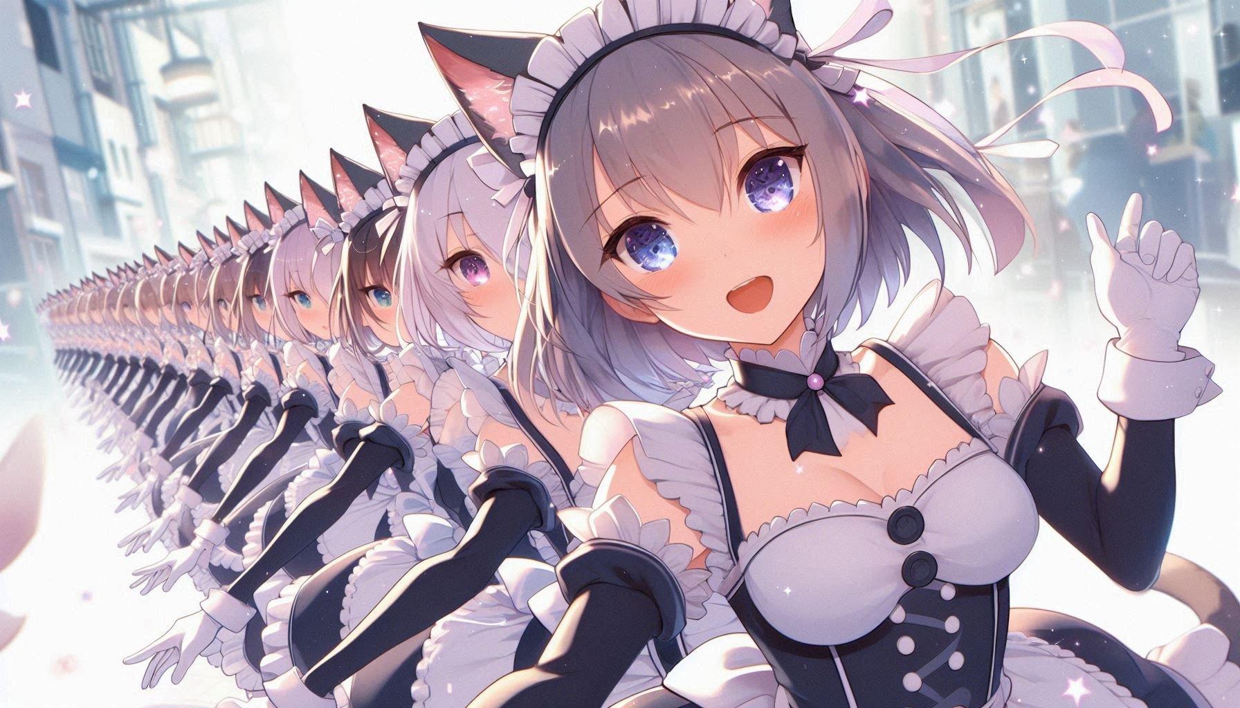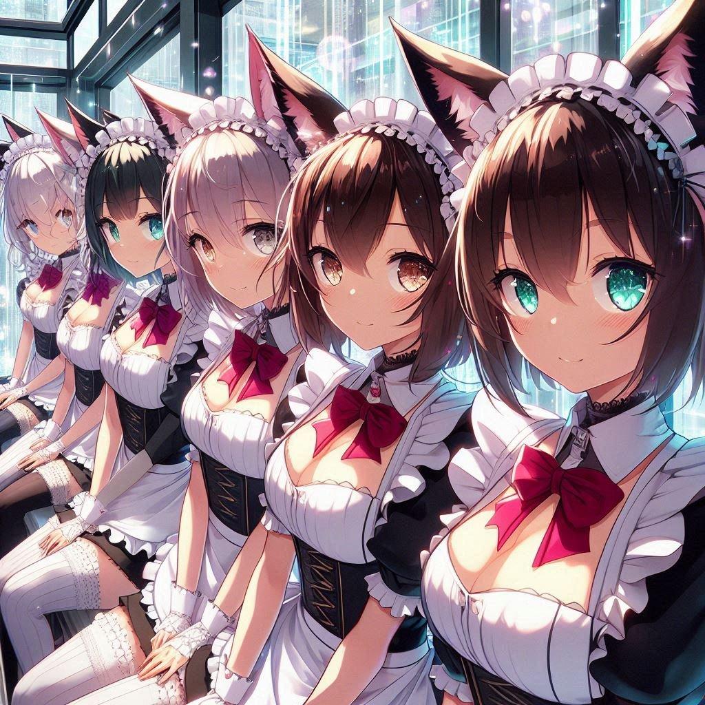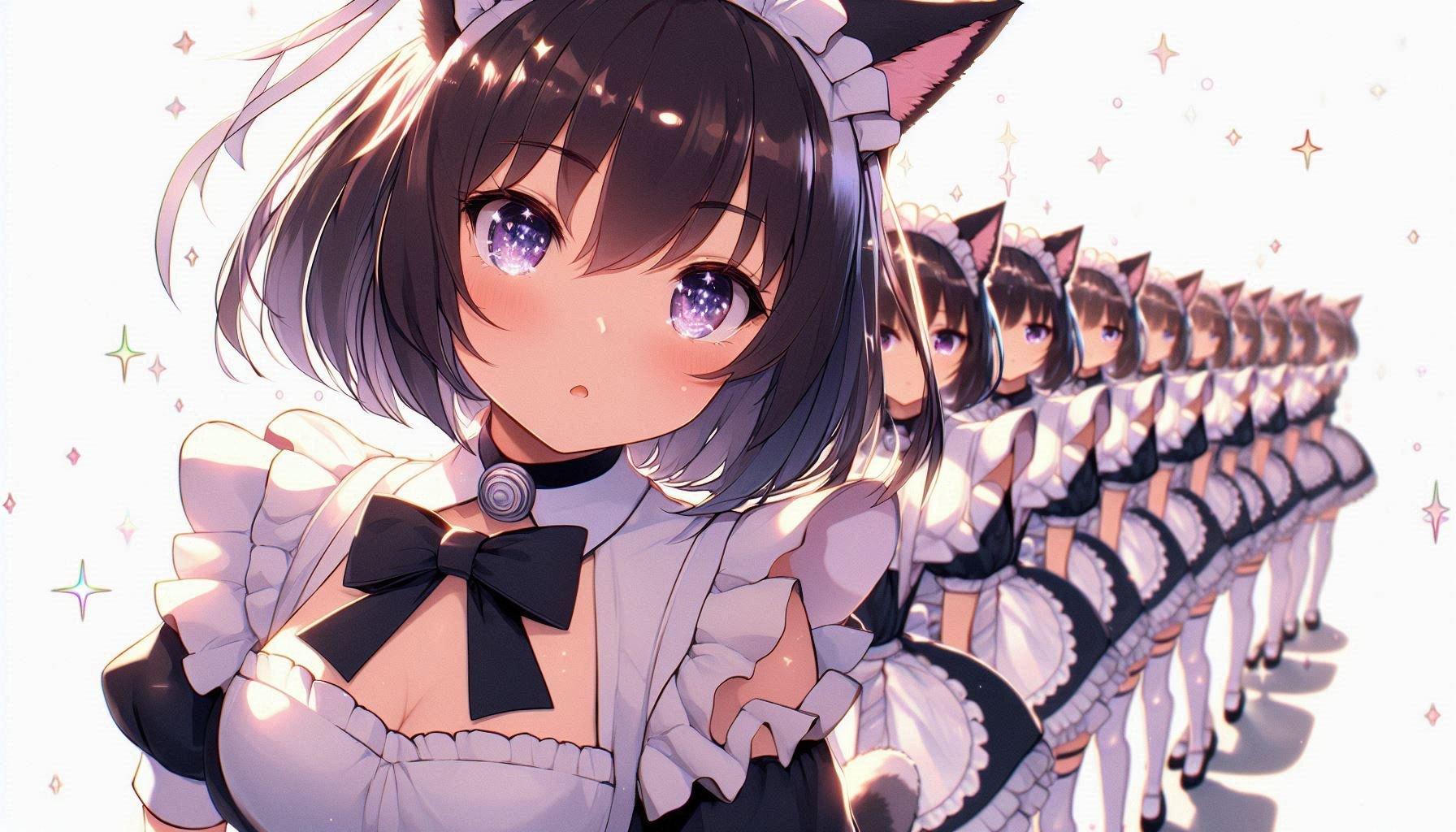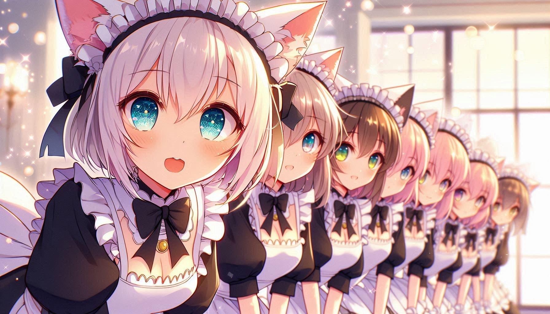 左右にずらっとメイドさんの図はAIさん描いてくれなかった🐱