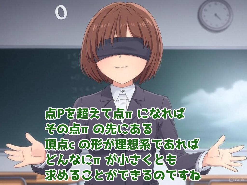 「πの法則に関して、ストルヴァは1+1=2=πという比較的シンプルな解釈で、今まで解決できなかった問題を解いたように思う、だけど、私の解釈は、ここにπとは決してππだけに享受されるものではなくcπにもこの法則の魅力が込められてるように思うのだ。例えば、人類は点cを言わば、乳首であるが、これは男女、哺乳類において当てはまる事象で、点cが2点あり、この大きさは円周率の大きさとしても数えられるのではないかと、私はcπであるから、つまり点cから接点pが当たった時に満足させられるのならば、例え、どんなに小さなπであろうとも点cが接点pの満足のいくものであったら、それはいかにしてπが小さくとも、理想値としてありなのではないかと考えるのですよ」