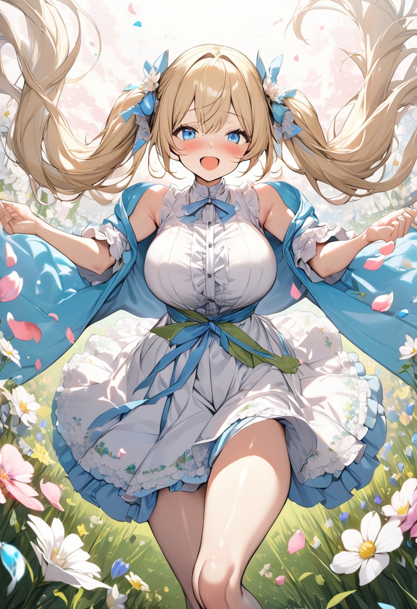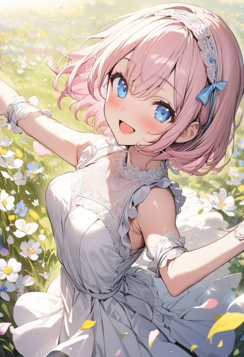 花畑からこっちに走ってくるイメージ。優しく抱き留めましょう。