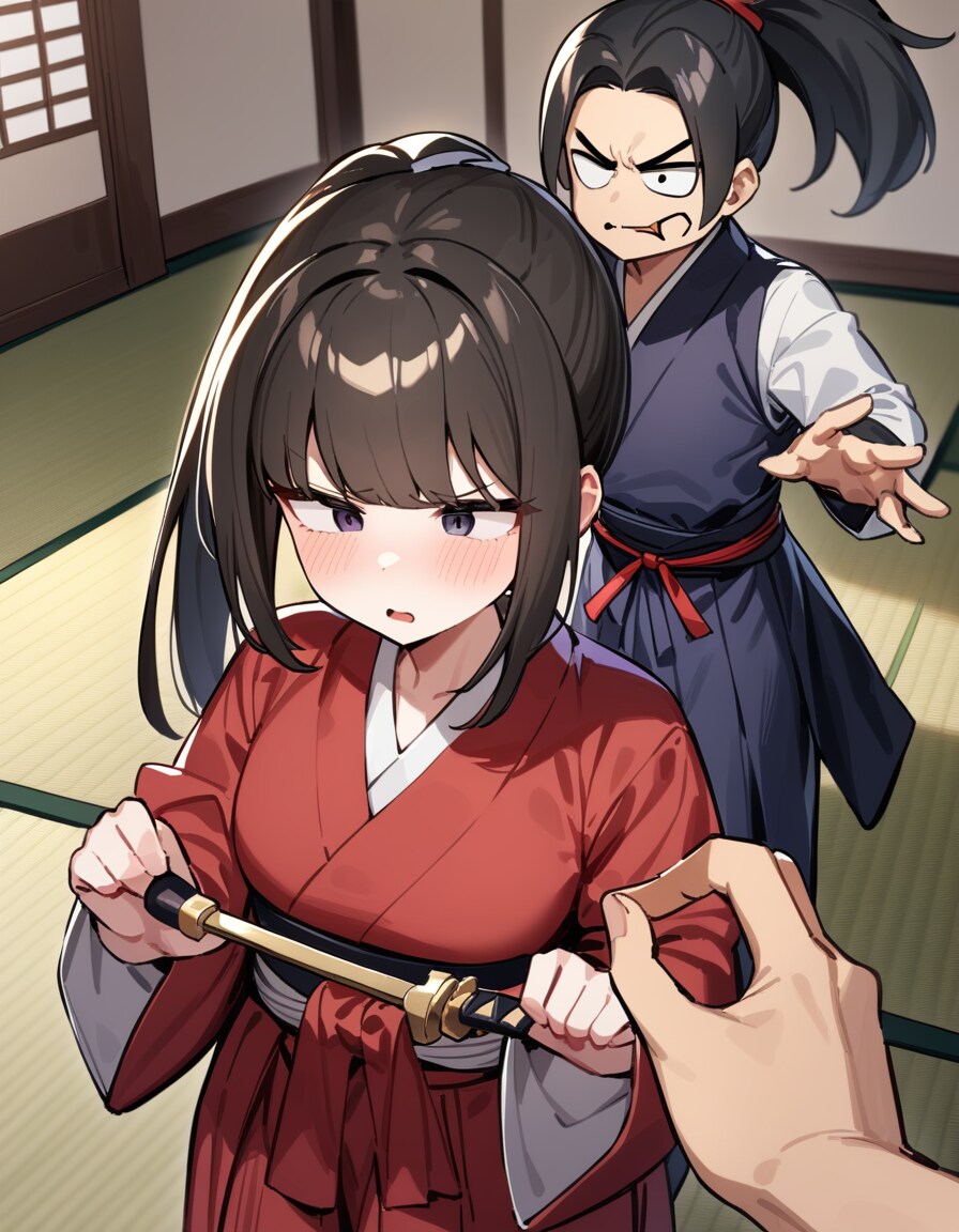 吉良上野介を擬人化した女の子「こらぁ~内匠頭殿・・・ここは殿中ですよ・・・なにをやっているのですか!!」