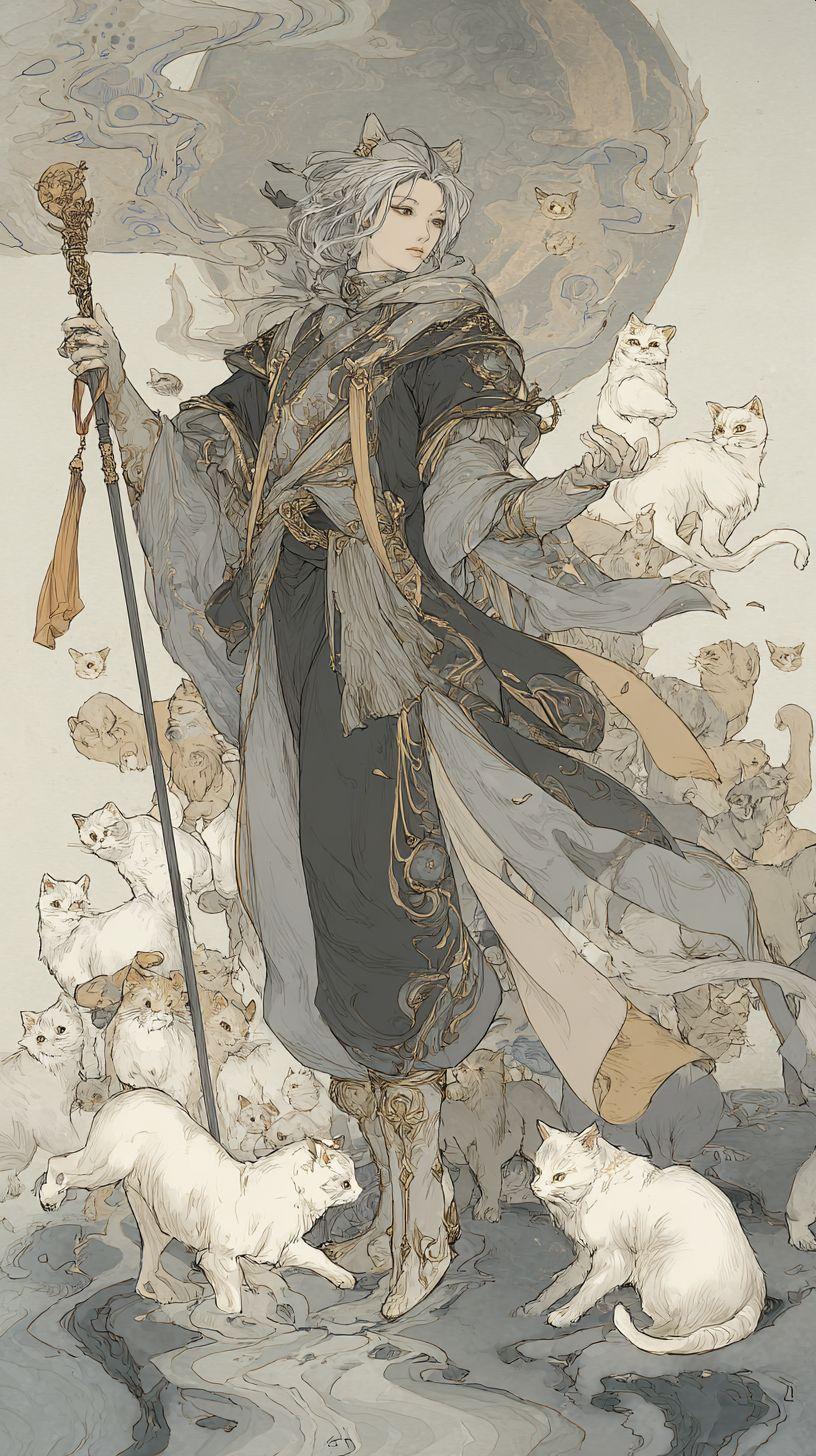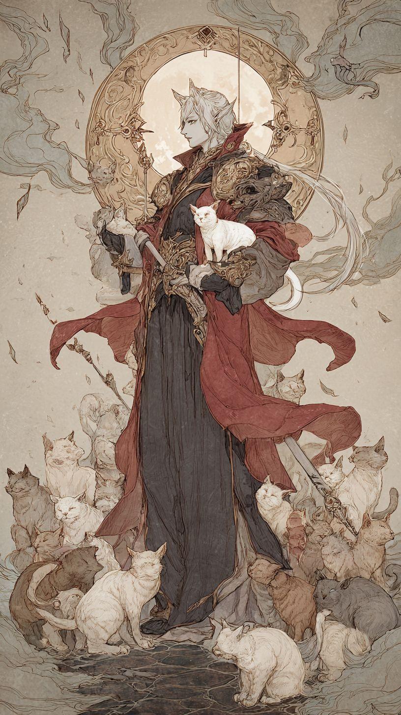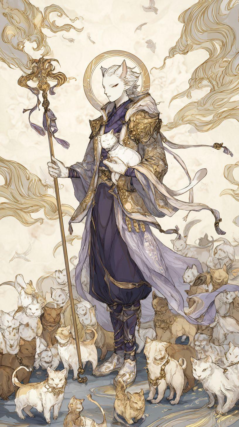 犬、羊、ライオンとも顔は守護する動物のものになっていたのに、ここにきて人の顔(猫耳つき)が登場。