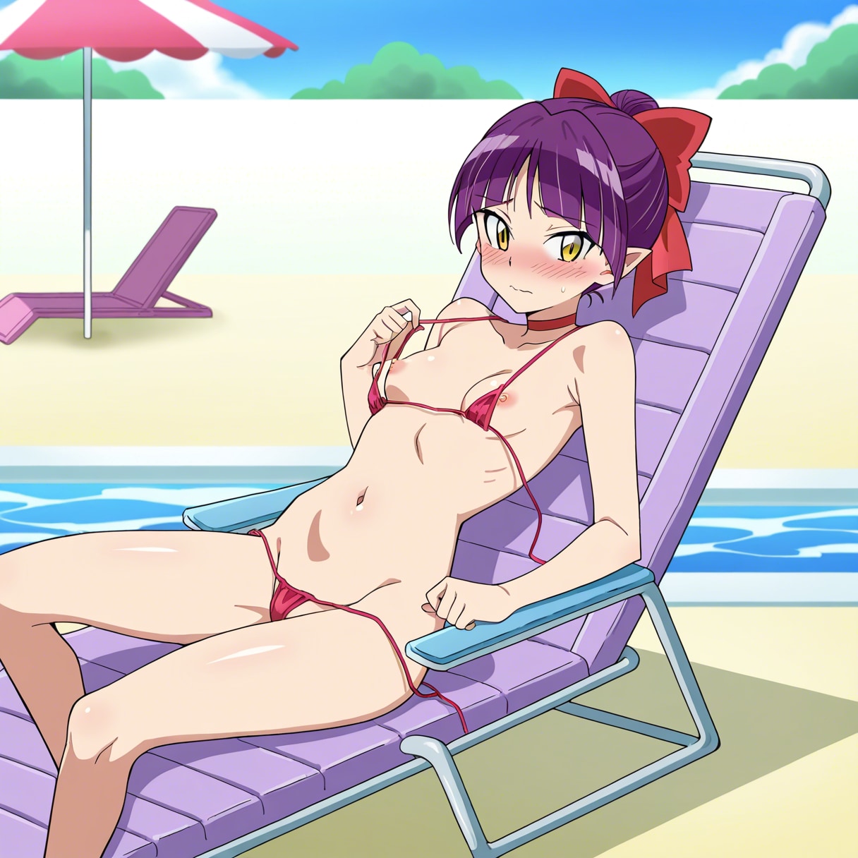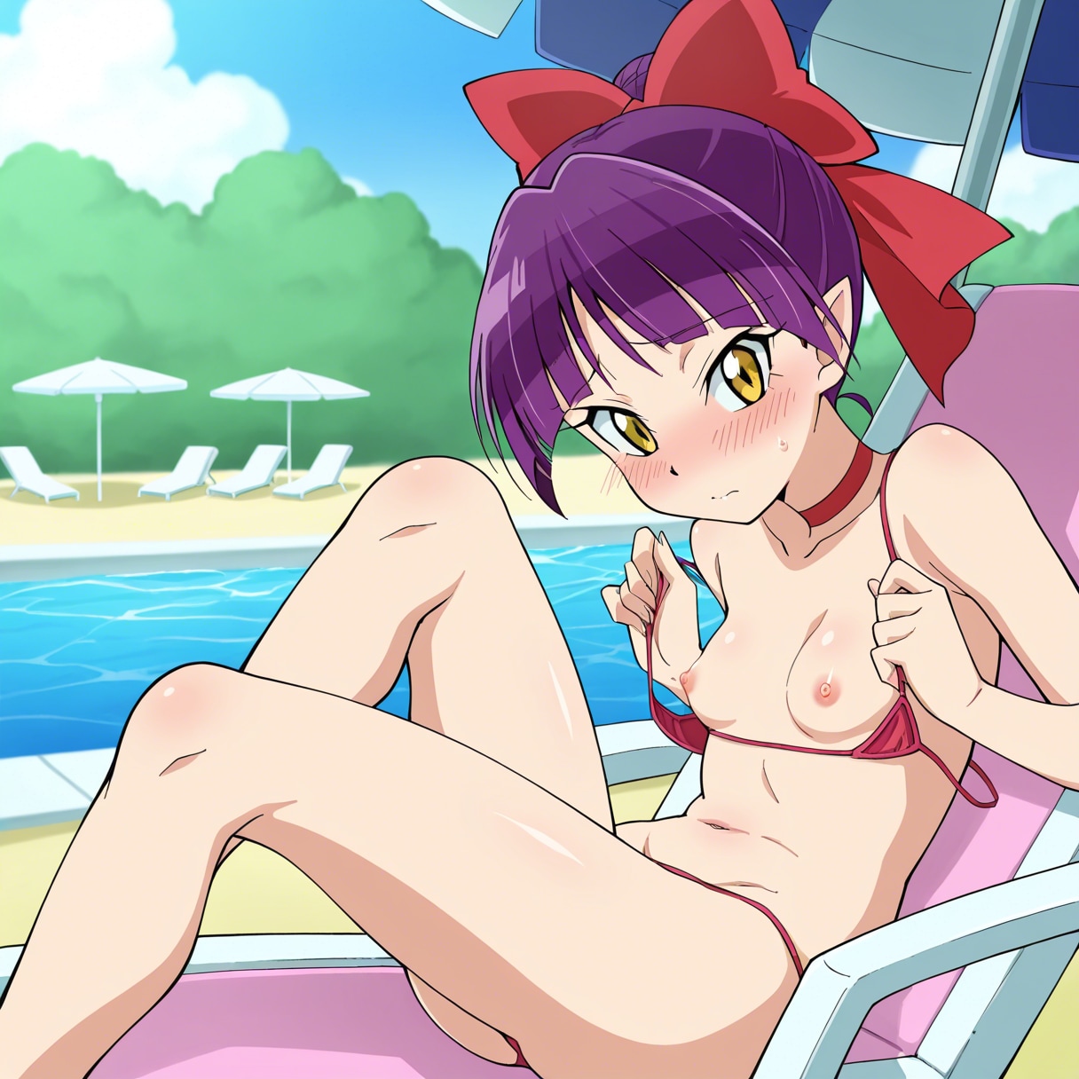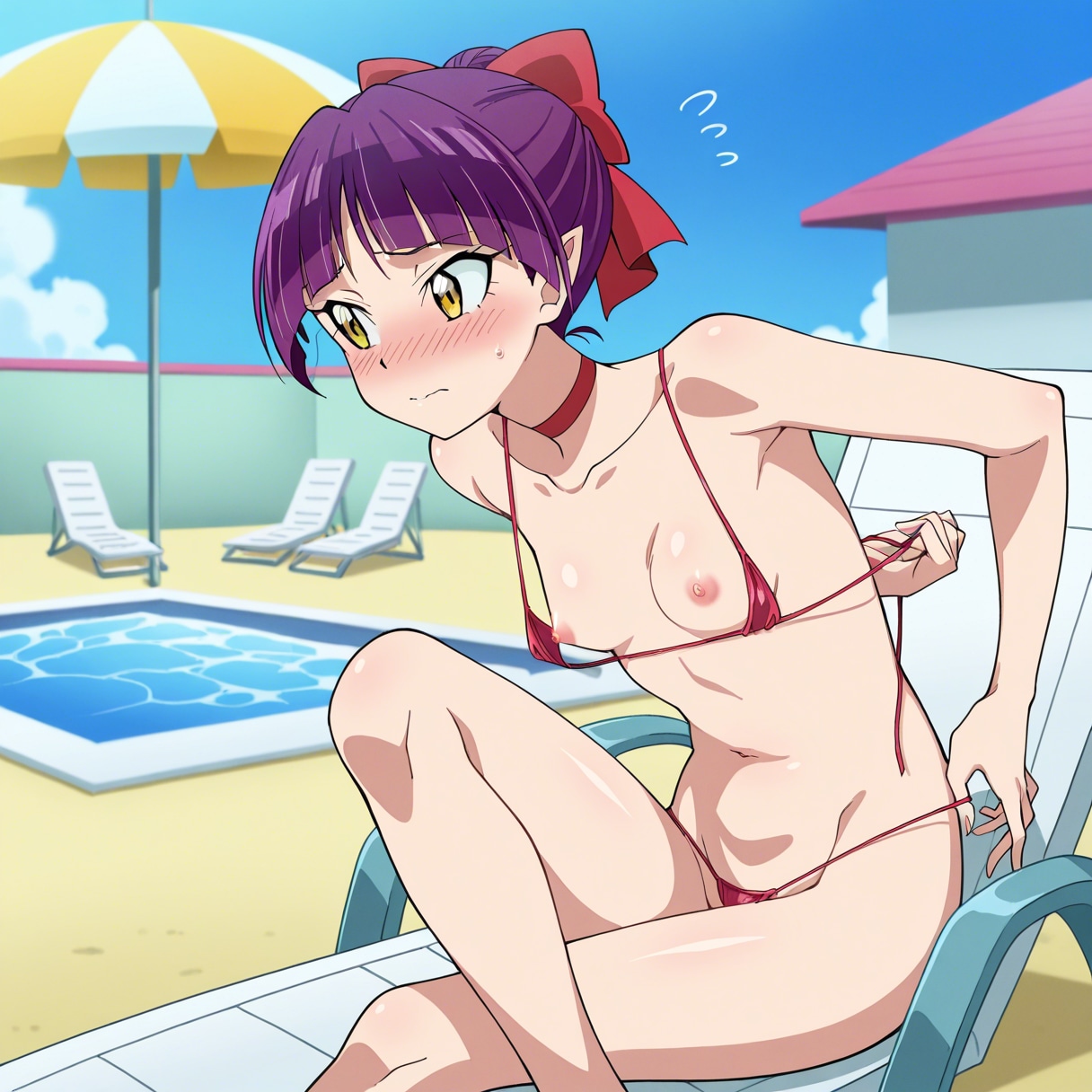 ねこ娘のマイクロビキニでサービスポーズのイラストでR-15からの続きです